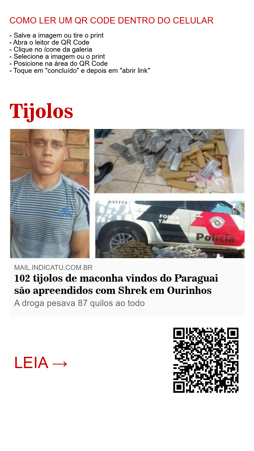 A Equipe Tática de Policiamento Militar de Ourinhos, sob o comando do sargento Faria, detiveram o jovem Jean Carlos Prado Galvão, vulgarmente conhecido como Shrek, na rua Geraldo Pereira Tavares, em Jardim Mirante.