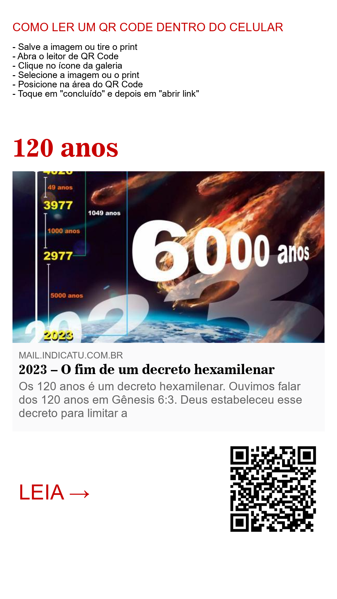 As informações que você verá a seguir revelam uma nova descoberta baseada em cálculos lógicos que delimitam, por decreto de Deus, a continuação do atual sistema de coisas até o ano 2023. Abordamos o texto base para esse entendimento no artigo o limite dos tempos terá de somar 120 anos. O texto é o mesmo, mas com detalhes até então ocultos e que comprovam de forma inequívoca que o Criador já havia delimitado um período de tempo específico para a descontinuação do atual sistema. Vejamos novamente o texto na íntegra. Diz: