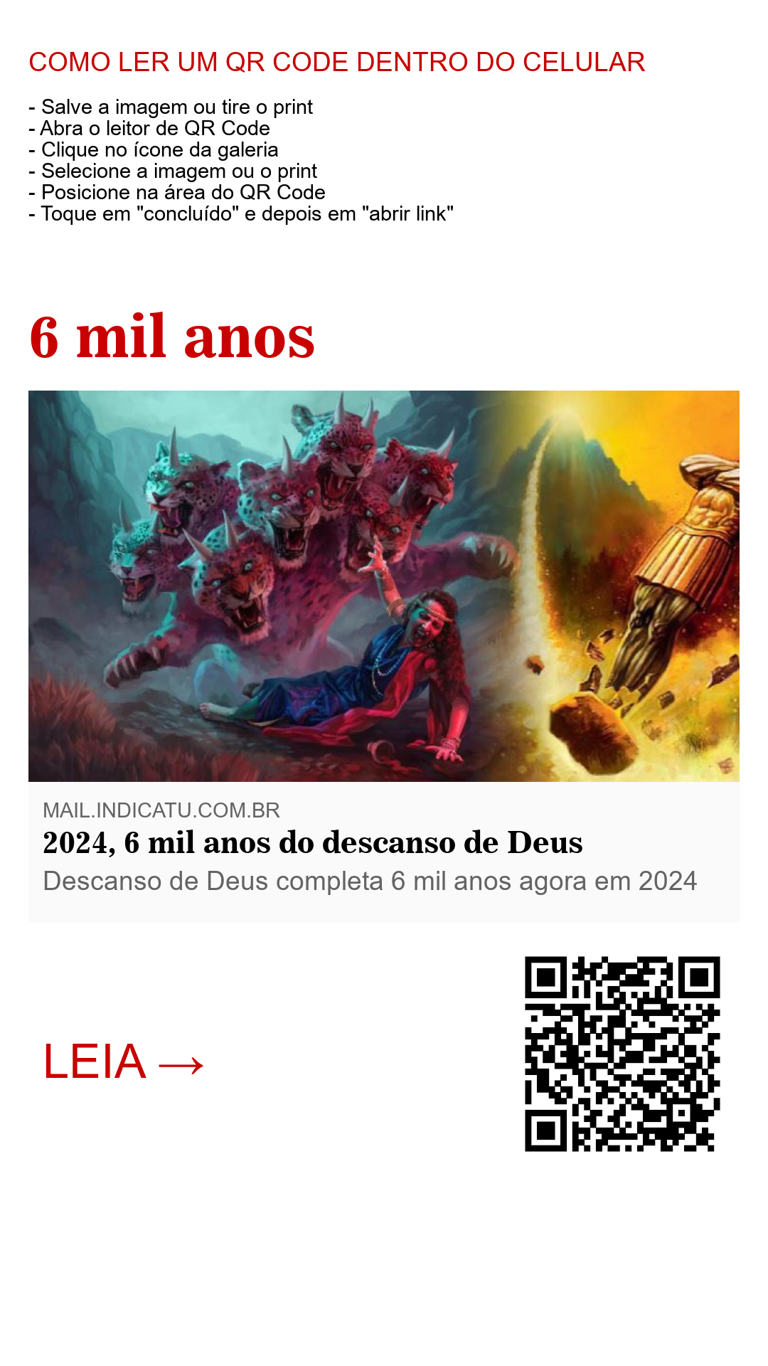 Agora em 2024, entre setembro e outubro, completa-se 6 mil anos do descanso de Deus, isto é, seis dias do último dia criativo. Se estivessem vivos, Eva estaria completando 6000 anos de vida, e seu marido Adão, 6.050 anos. Cada um dos dias criativos durou 7 mil anos. Estamos no fim do último dia “criativo”, faltando agora 1000 anos e alguns meses para o fim do ciclo do dia de descanso de Deus, que é de 7 mil anos. O reinado milenar de Jesus Cristo completará esse ciclo, e no fim, ele entregará ao seu pai a humanidade restaurada, conforme o propósito criativo original (Gênesis 1:28). O que esperar para 2024?