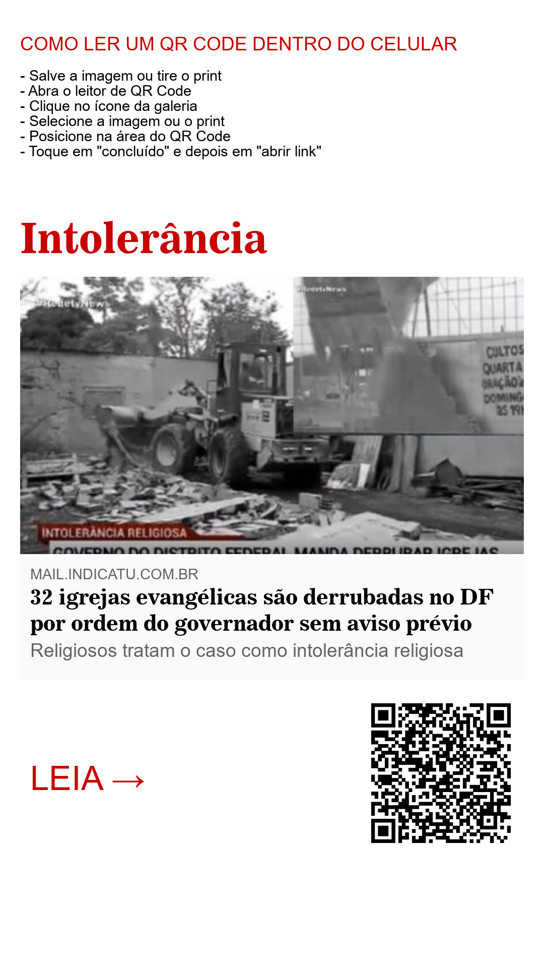 É o princípio da perseguição religiosa no Brasil, a qual começou na Rússia com as testemunhas de Jeová e se espalhou para outros países. Resta saber até onde tudo isso irá parar.