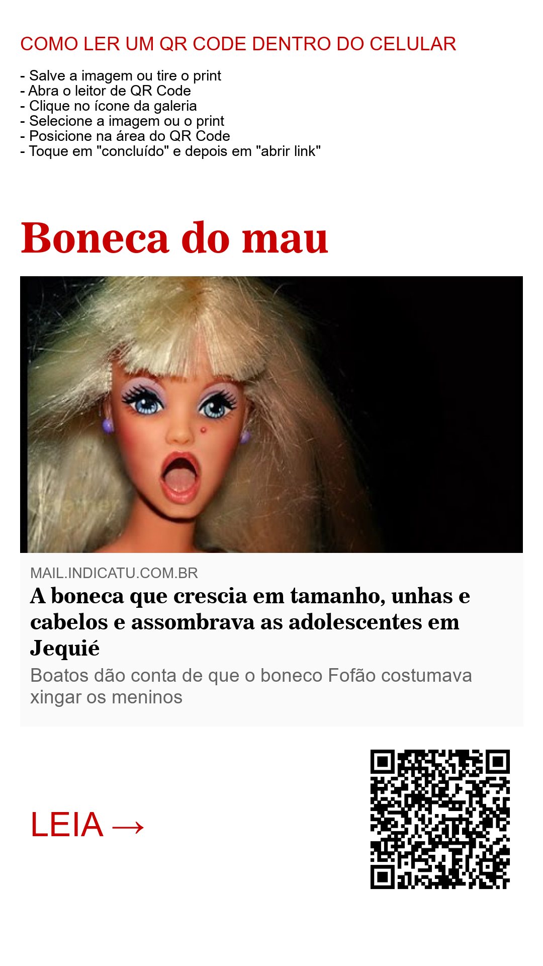 A boneca que crescia em tamanho, unhas e cabelos e assombrava as adolescentes em Jequié