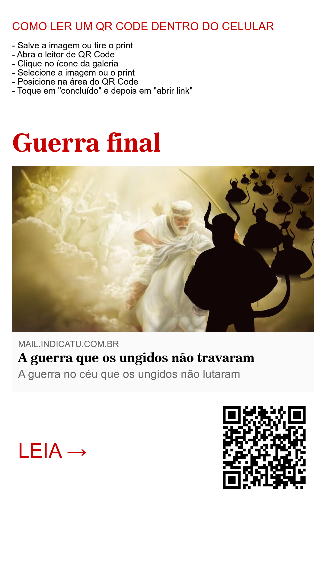 Está chegando a hora! É aqui que entendemos plenamente o sentido do texto que diz que “melhor é o fim de uma coisa do que o seu começo” (Eclesiastes 7:8). Sim! O fim da nossa guerra espiritual será bem melhor do que o começo dela. E melhor ainda será o fim o governo do Diabo que já dura seis mil anos. Os ungidos não falharão nessa guerra. Eles, juntos com Jesus, lutarão e vencerão o Diabo e seus anjos e darão início a um governo de paz de mil anos. O fim disso também será melhor que o começo, e a humanidade estará livre dos seus piores algozes para sempre - o pecado e a morte (Apocalipse 21:4).