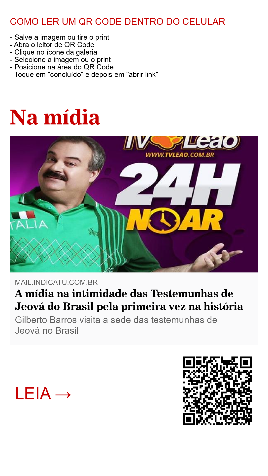 O sonho de muitas Testemunhas de Jeová aqui do Brasil é visitar a sede do grupo, responsável pela produção de mais de 20 milhões de literaturas impressas que são distribuidas para o mundo todo. Um sonho que se realiza através de uma reportagem feita pela equipe da TV Leão, na pessoa do Gilberto Barros que, em seu primeiro capítulo da série "A visita em Betel", apresentou ao mundo, especialmente à seu público aqui no Brasil, através da sua TV na web, um pouco do que é a vida na intimidade da 'Família de Betel', como costumam chamar as sedes mundiais das Testemunhas de Jeová, operada por voluntários em várias partes do mundo.
