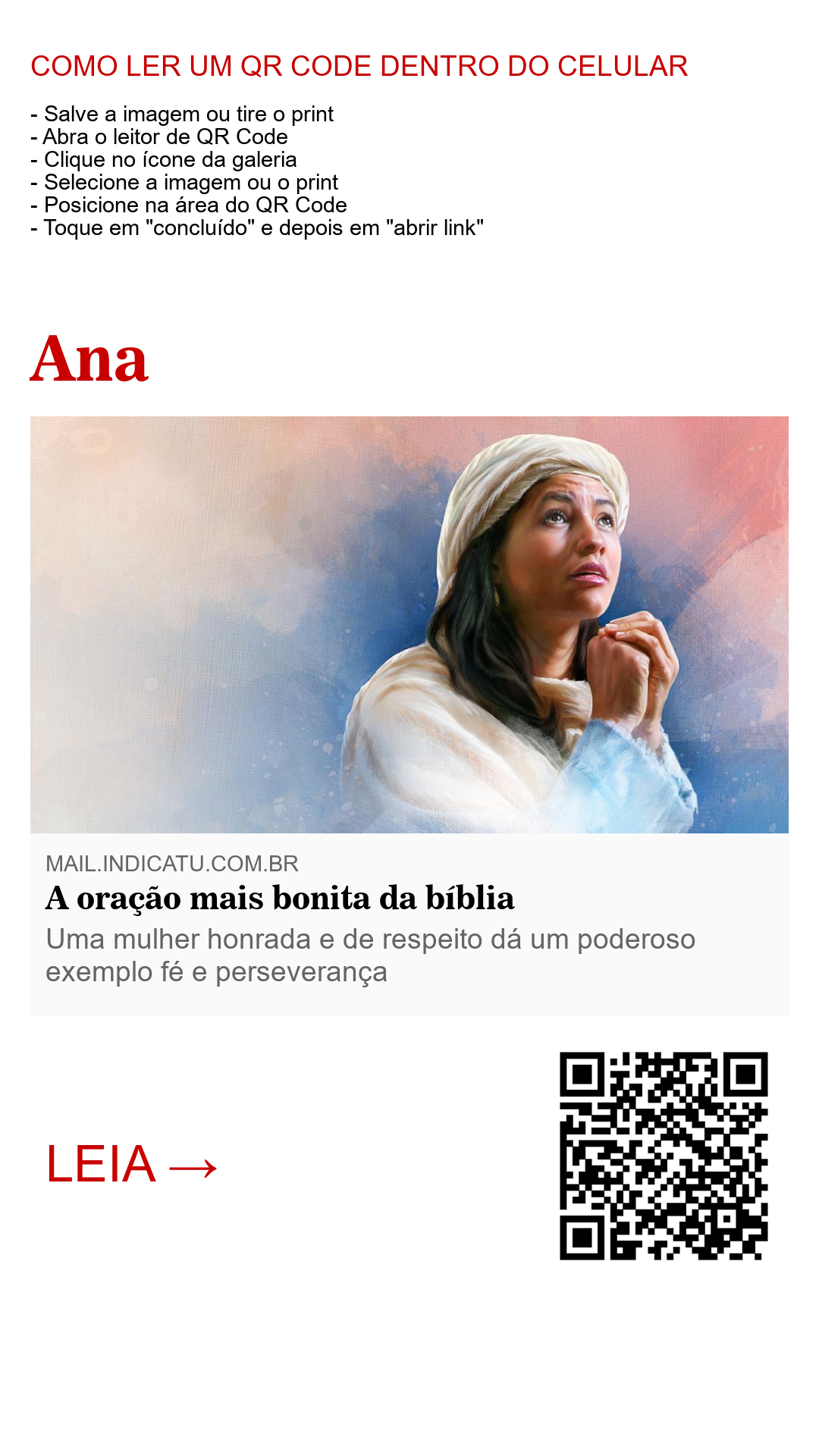 Todas as orações na bíblia são sinceras. Mas têm algumas que, além de sinceras, são muito bonitas. Neste artigo falaremos da que achamos ser a mais pura e bonita das orações registradas no livro sagrado; e ela foi feita por uma mulher.