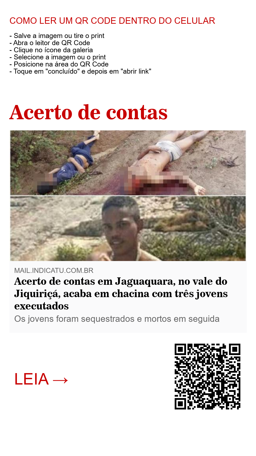 Madrugada de terça-feira em Jaguaquara, no vale do Jiquiriça, microregião de Jequié. Quatro elementos invadiram a casa de número 103 na rua José dos passos e mantiveram como reféns Elton Jhon Santos da Silva, Fábio Queiroz Borges e Gilmar de Jesus Santos. Este último, ao tentar fugir do cárcere privado, foi baleado e morto na hora pelos assassinos. As outras vítimas da barbárie tiveram seus corpos jogados às márgens da BR-116, próximo à comunidade conhecida como 'sem terras', sendo encontrados já na manhã de quarta-feira (23).