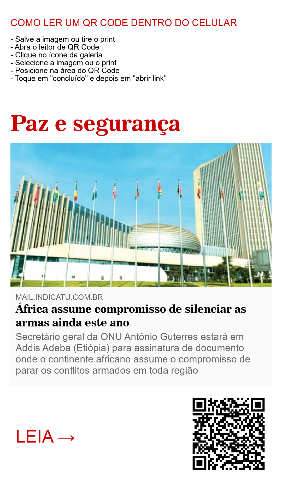 O compromisso de trabalhar para silenciar as armas também deve ser assumido pelas Nações Unidas, através do seu líder, António Guterres, que definiu, para este ano duas linhas de trabalho com a União Africana: alterações climáticas e financiamento para o desenvolvimento do continente.