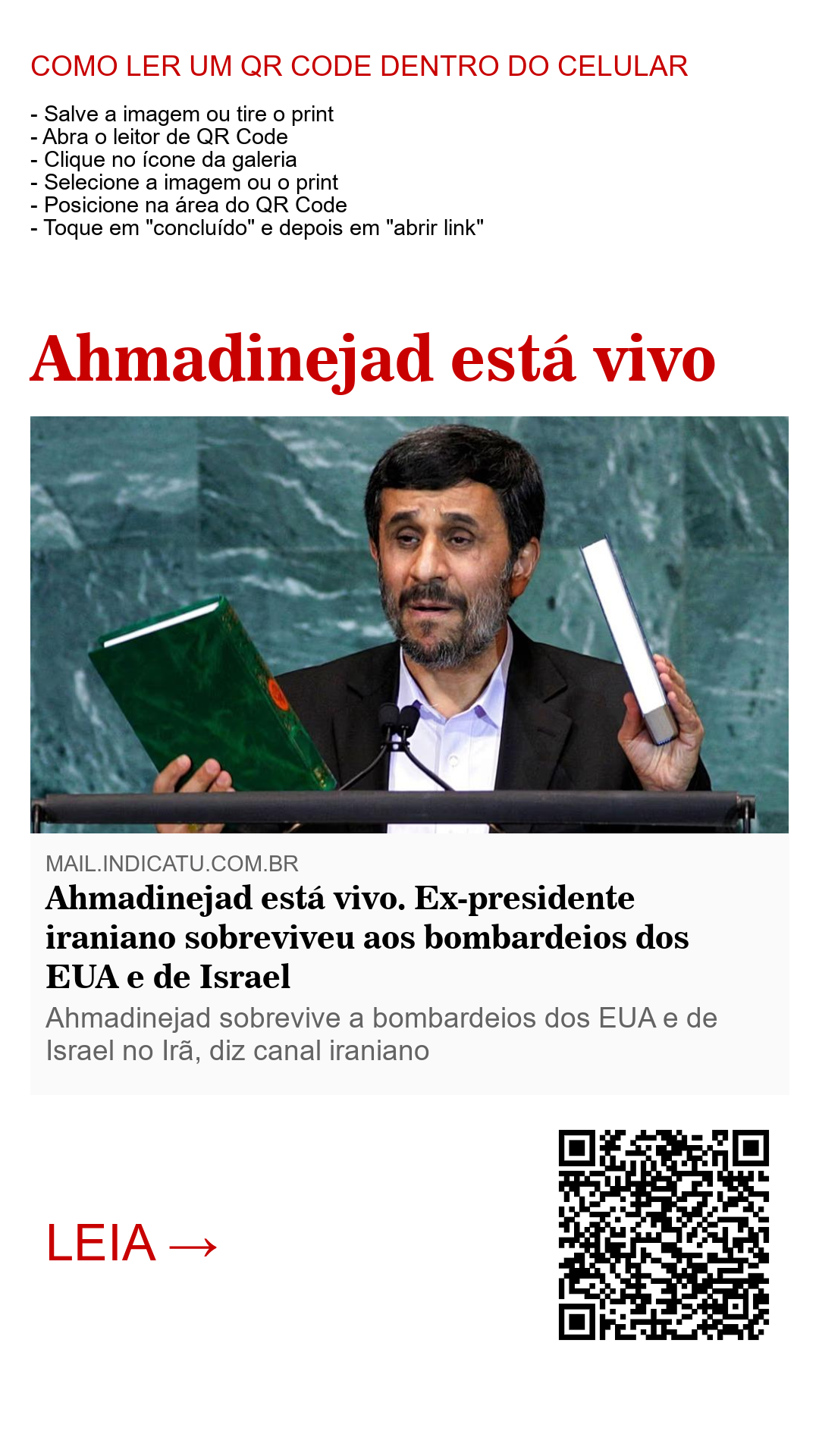 Ahmadinejad está vivo. Ex-presidente iraniano sobreviveu aos bombardeios dos EUA e de Israel