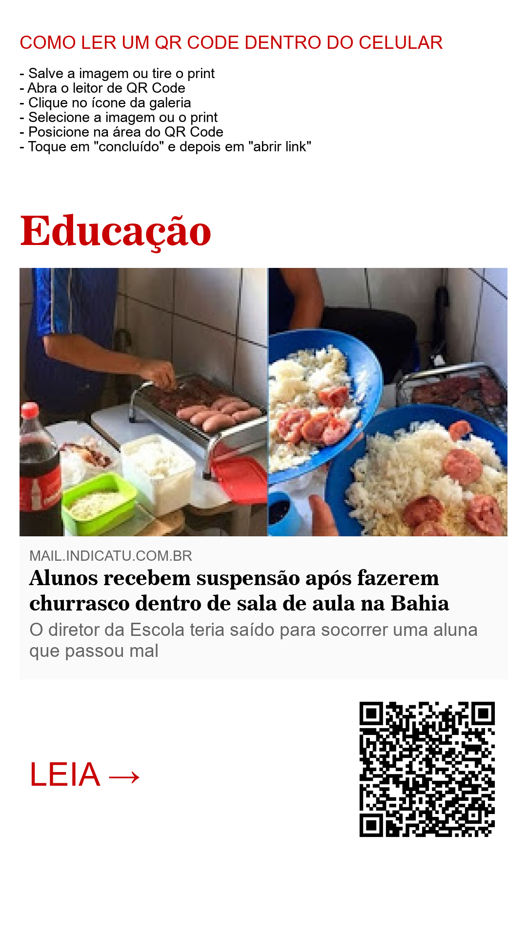 Alunos do terceiro ano, tendo entre 16 e 17 anos, do colégio estadual Menandro Minahim no município de Una no sul da Bahia, foram suspensos após realizarem um churrasco dentro de uma sala de aula do colégio na manhã da última terça-feira (24).