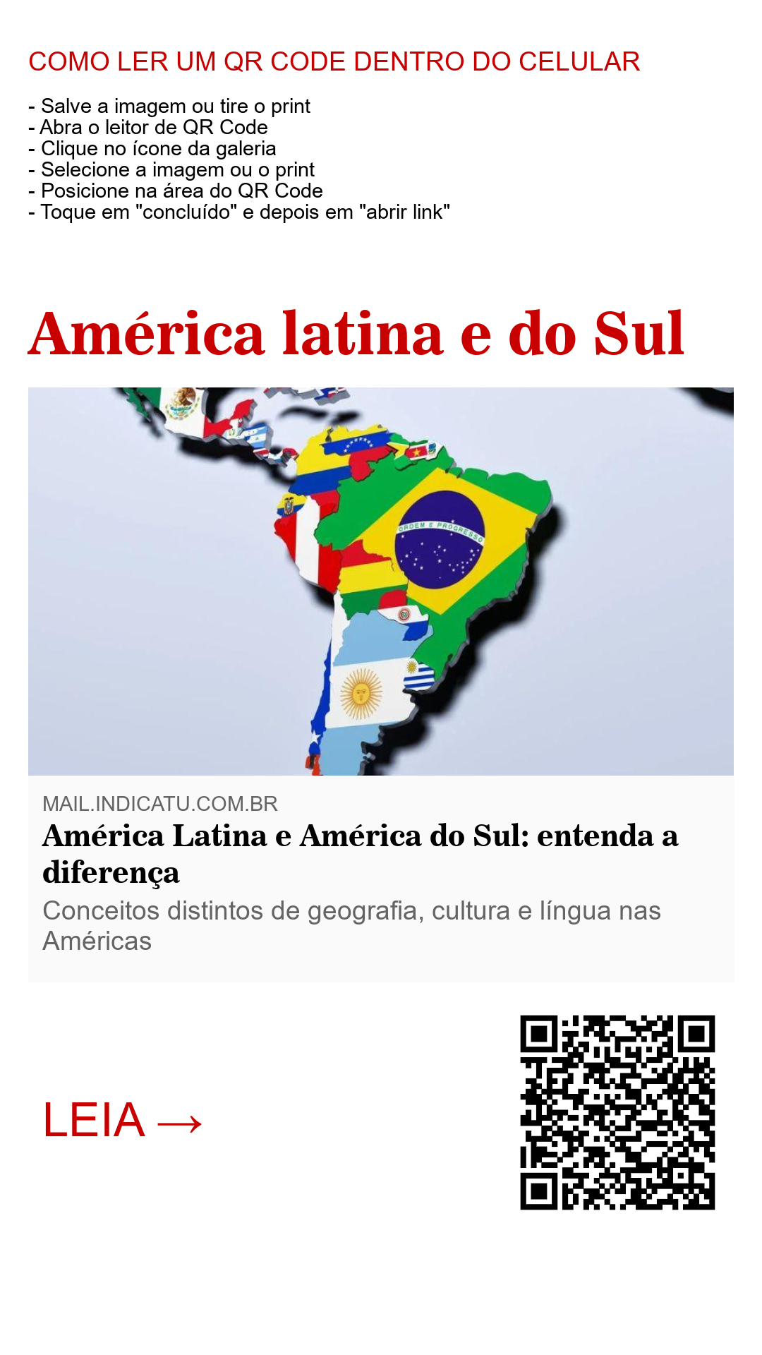 - Critério de definição: a América do Sul é definida por localização; a América Latina, por idioma.