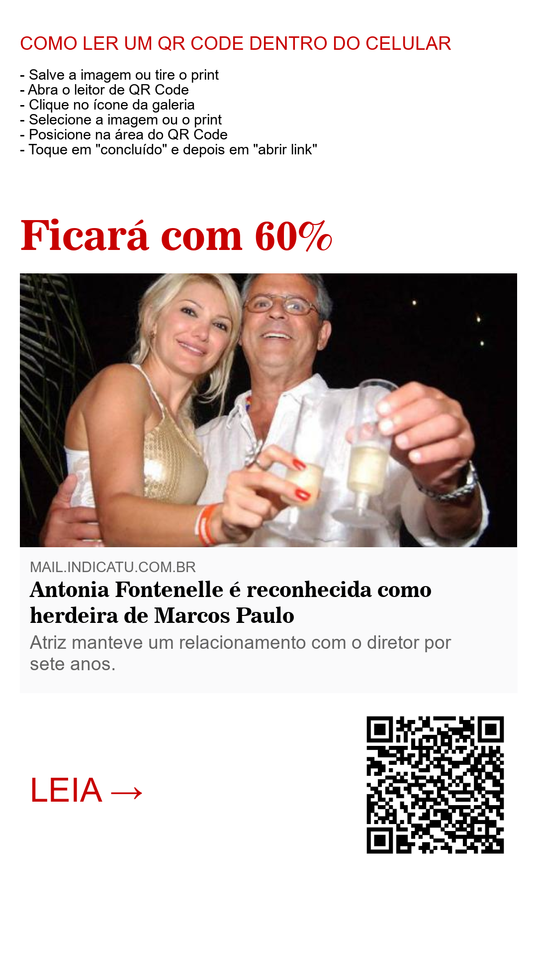 Antonia Fontenelle foi reconhecida como herdeira de Marcos Paulo, ator e diretor morto em 2012 com quem ela manteve um relacionamento por sete anos. Segundo seu advogado, Adailton Rodrigues, da Sanseverino Advogados Associados, confirmou ao site de VEJA, a atriz agora poderá participar da partilha de bens do ex-companheiro junto com as três filhas do ator.