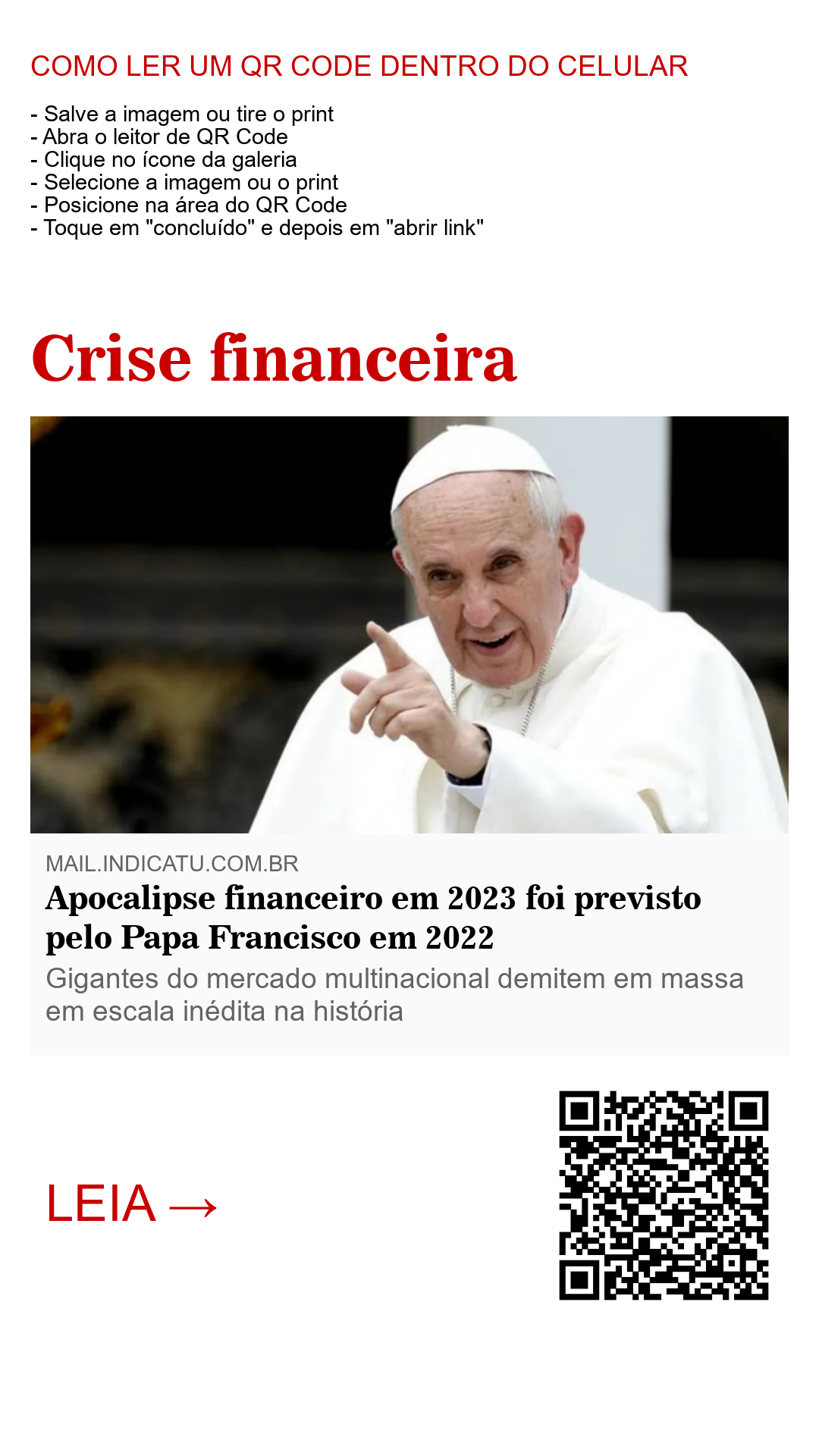 Apocalipse financeiro em 2023 foi previsto pelo Papa Francisco em 2022