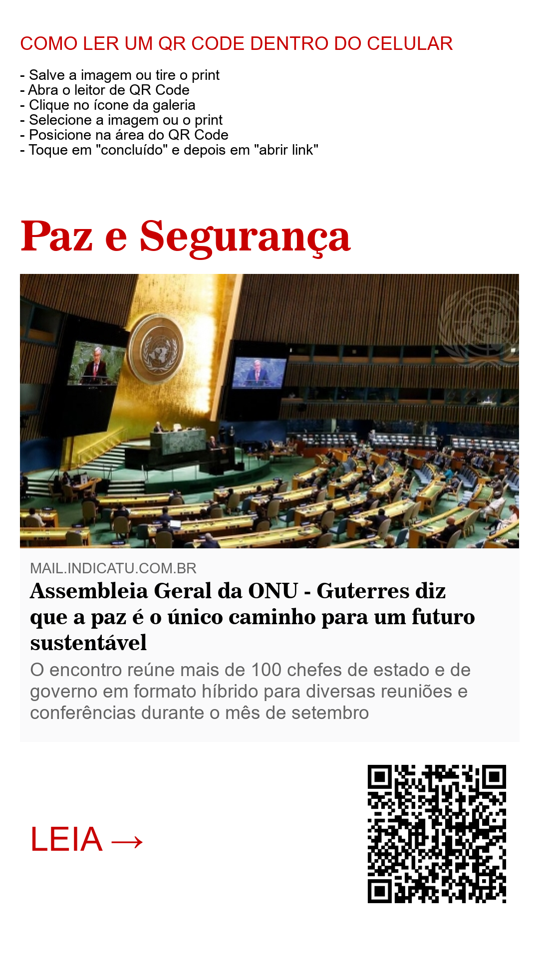 Assembleia Geral da ONU - Guterres diz que a paz é o único caminho para um futuro sustentável