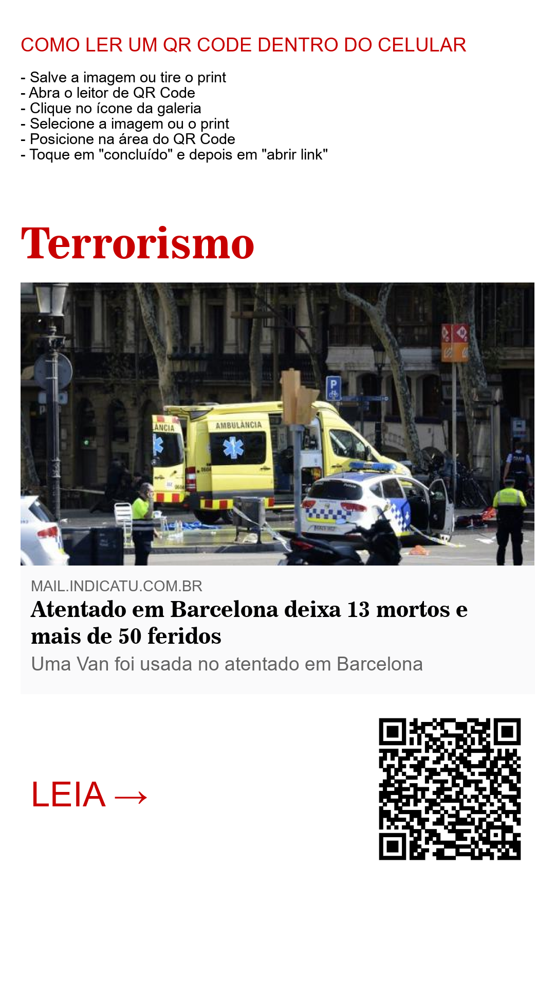 Um veículo modelo Van foi usado por terroristas em um atentado nesta quinta-feira (17) em La Rambla, região de grande movimentação turística de Barcelona na Espanha. Segundo informações policiais, 13 pessoas morreram até agora e mais de 50 ficaram feridas no atentado, sendo que algumas estão em estado grave.