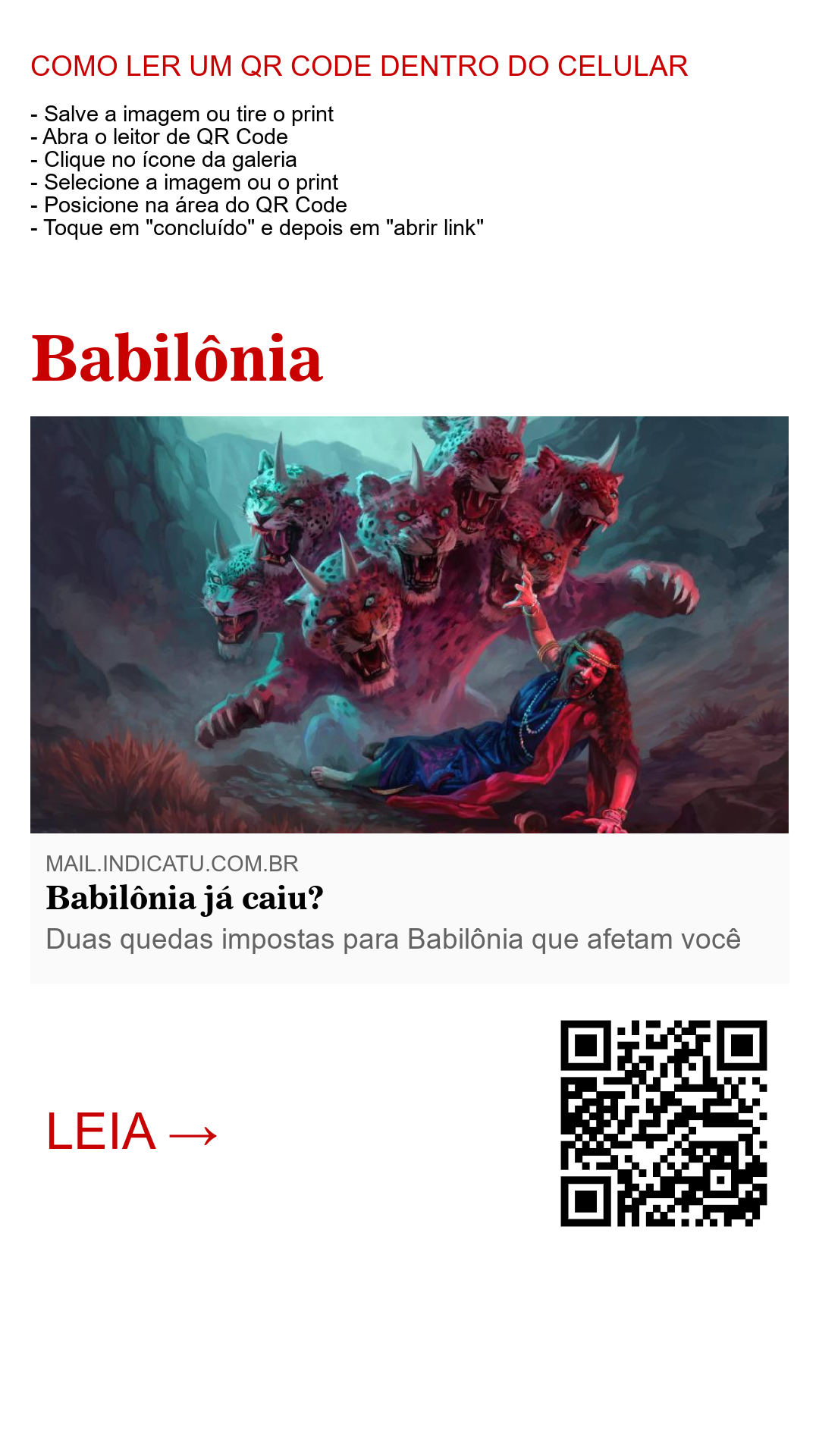 Percebemos aqui que a condição de Babilônia, a Grande, é bem parecida com a das baratas porque, mesmo depois de ela “cair”, ela segue representando perigo para qualquer indivíduo, pois é dito que, após sua queda, ela se torna “morada de demônios e esconderijo de todo espírito impuro e de toda ave impura e odiada”. Isso responde à pergunta deste artigo, pois, a queda de Babilônia narrada aqui não é a mesma que a descrita em Apocalipse 17:16. Por quê? Porque a queda dela aqui dá a ideia de “continuidade”. Ela cai de uma posição de destaque, mas segue ainda sendo Babilônia, a Grande, porém, não com o poder e a autoridade de antes. A queda de Babilônia que todos esperamos com expectativa será bem diferente dessa aqui de Apocalipse 18:2 porque, quando isso acontecer, não haverá mais abrigo ou esconderijo para os demônios. Eles também serão lançados no abismo e não vão mais ter nenhuma influência negativa sobre a humanidade (Apocalipse 20: 1-3). Assim, pode-se dizer que Babilônia é a velha barata, e os demônios são os vermes, as bactérias e os micróbios perigosos das secreções dela. Considerar isso é importante por causa do que vem a seguir. Veja: