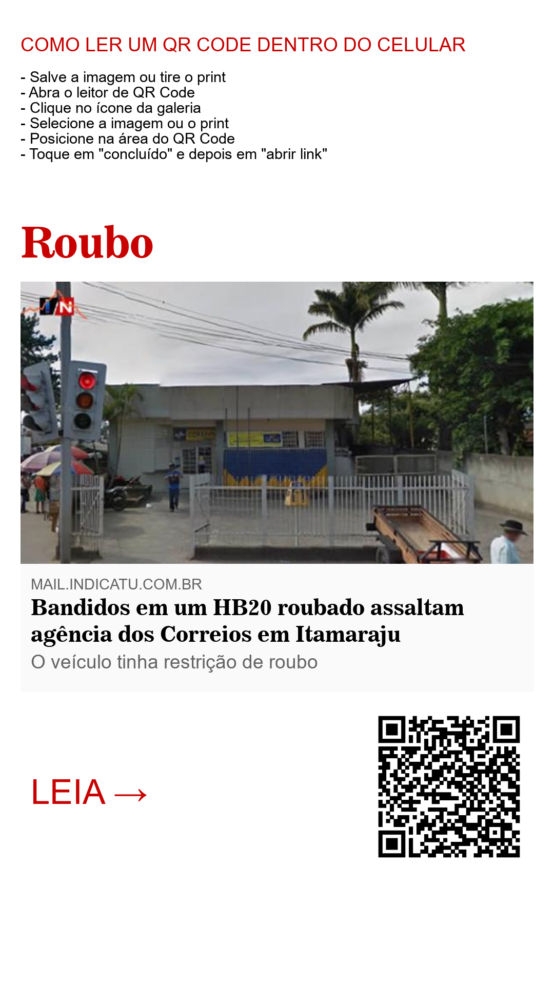 Bandidos em um HB20 roubado assaltam agência dos Correios em Itamaraju