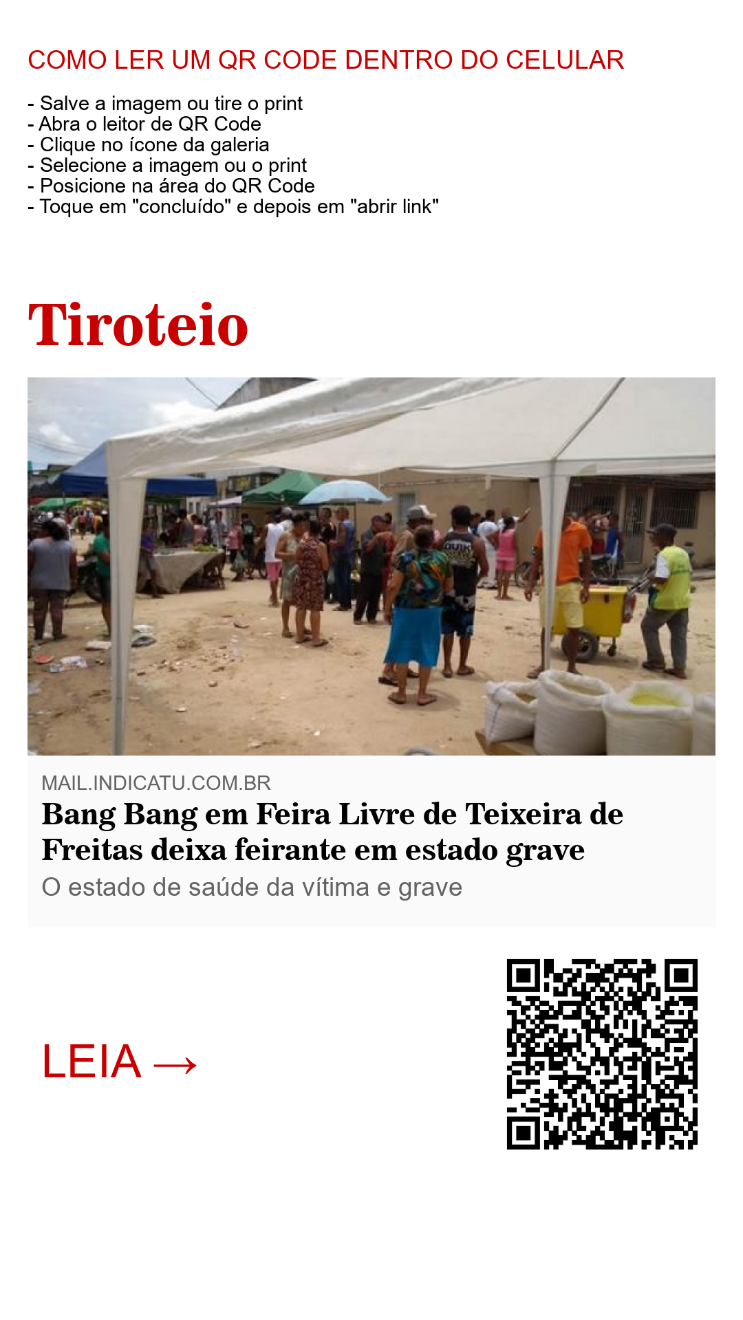 Bang Bang em Feira Livre de Teixeira de Freitas deixa feirante em estado grave