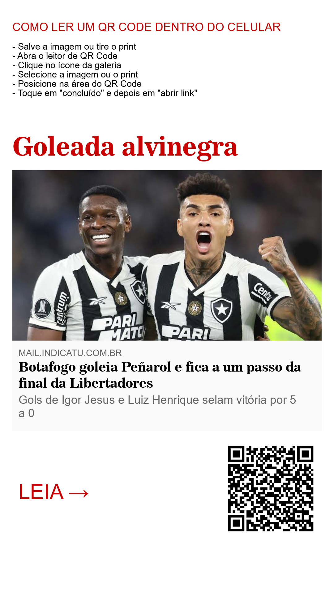 Com o resultado, o Botafogo abriu uma vantagem impressionante e já está praticamente garantido na final da Copa Libertadores. O jogo de volta, que será disputado na casa do Peñarol, parece uma mera formalidade para a equipe brasileira, que precisa apenas manter o controle da ampla vantagem conquistada no primeiro confronto.