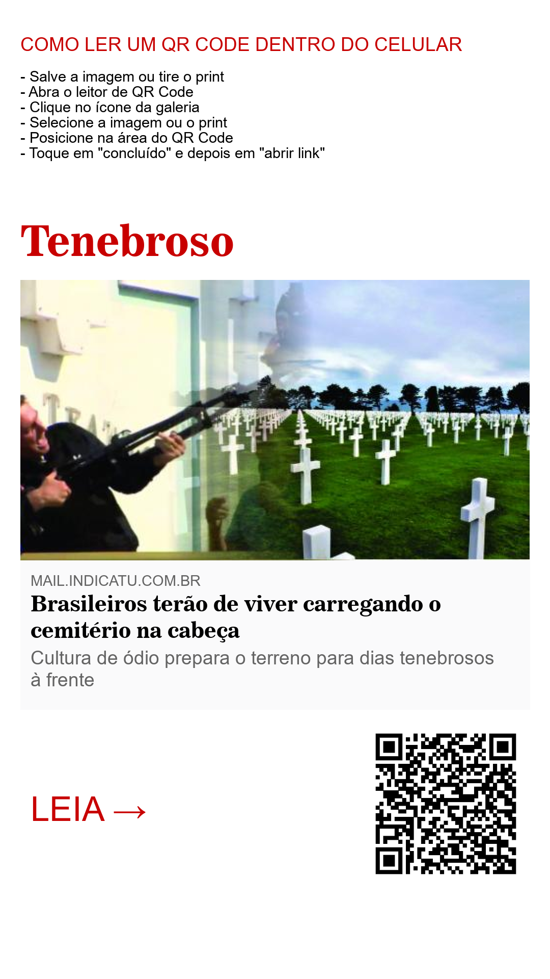 A população armada e com o cemitério na cabeça! A falsa promessa de segurança dita a golpe de frases feitas por Jair Bolsonaro caiu no gosto, primeiramente, da classe “média” brasileira, que já goza de certa segurança financeira, política e social, mas que, pelo visto não é o bastante. A cidade dos mortos tem que ser o destino da classe pobre da sociedade.