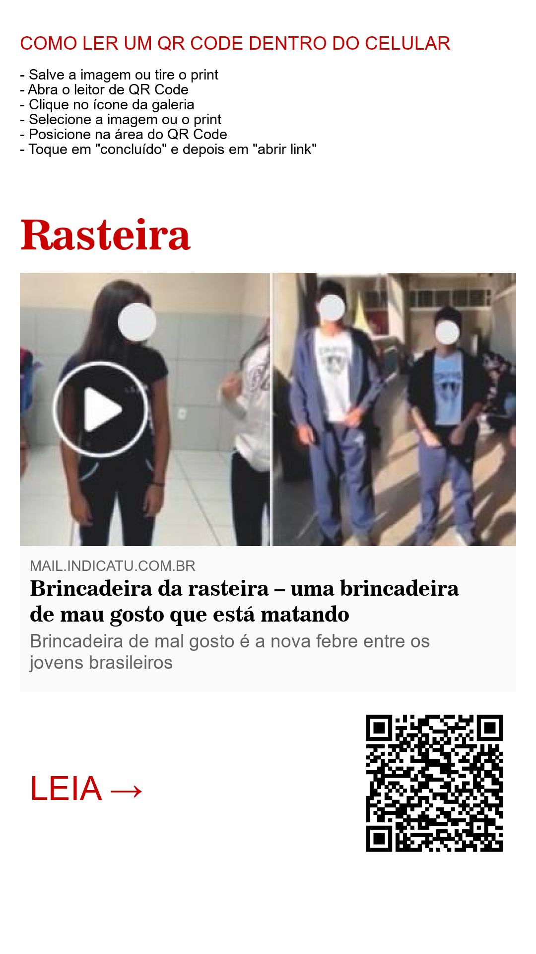 No Brasil as coisas estão assim. Uma brincadeira de mau gosto vira moda e rapidamente viraliza nas redes sociais. De repente, aquilo que era uma simples brincadeira já está causando brigas, amizades rompidas, relacionamentos rachados e, no pior dos casos, levando à morte.