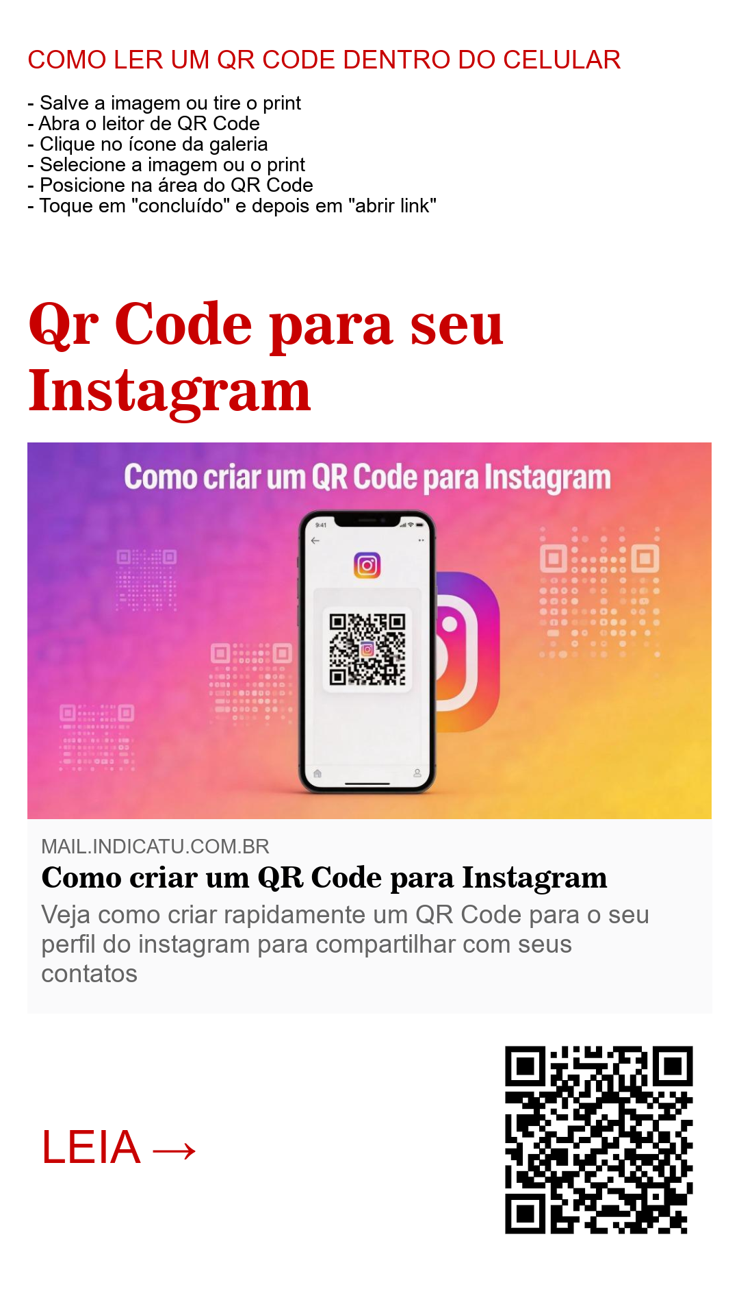 Para gerar um QR Code do seu Instagram, basta utilizar nossa ferramenta gratuita.