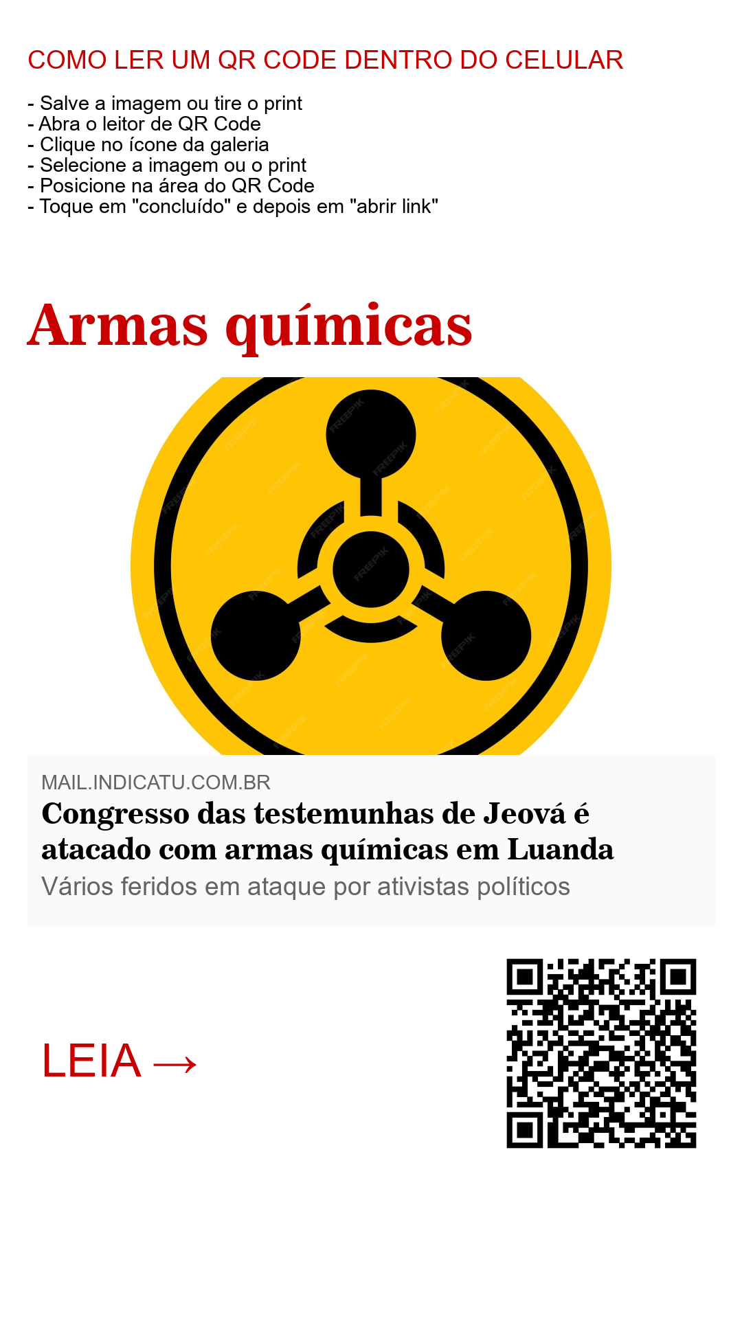 Ativistas políticos de Luanda, capital e maior cidade de Angola, na África, invadiram um congresso regional das testemunhas de Jeová hoje (26) por volta  das 15:00h, no segundo dia do congresso, e jogaram gás tóxico nos presentes deixando vários feridos.