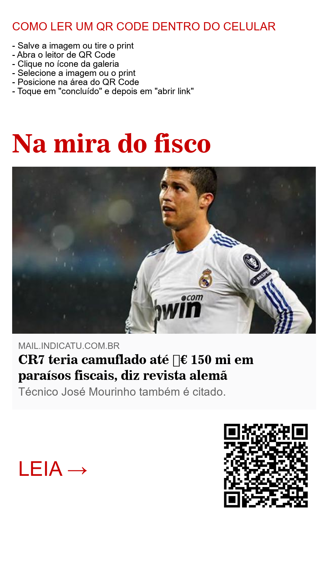 A partir de informações obtidas pelo jornal alemão "Der Spiegel", os diários afirmam que Cristiano Ronaldo teria "camuflado 150 milhões de euros em paraísos fiscais, na Suíça e nas Ilhas Virgens Britânicas", beneficiando-se de "um sistema elaborado por seu empresário, Jorge Mendes".