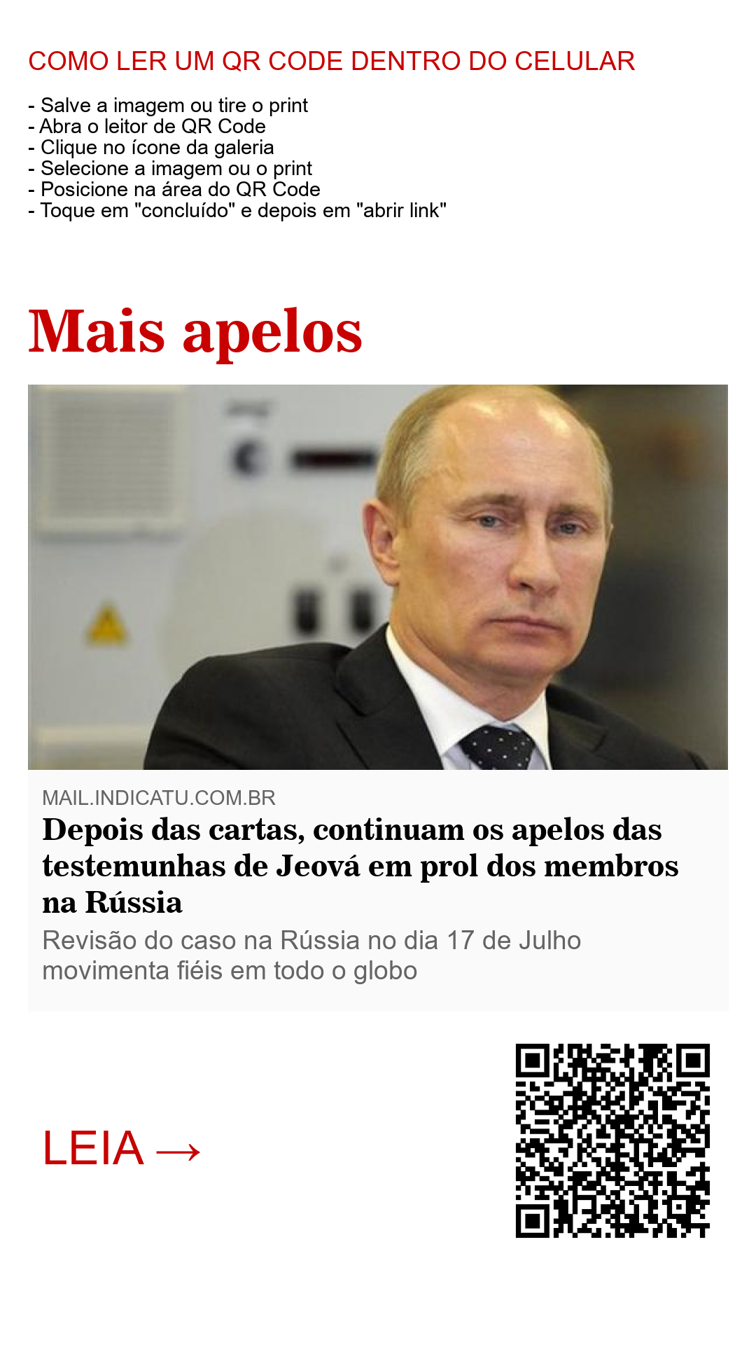 Obs: “O pedido não foi oficial, muito menos uma ordem, mas sim, um incentivo dado a todas as testemunhas de Jeová a orarem por seus irmãos na Rússia”.