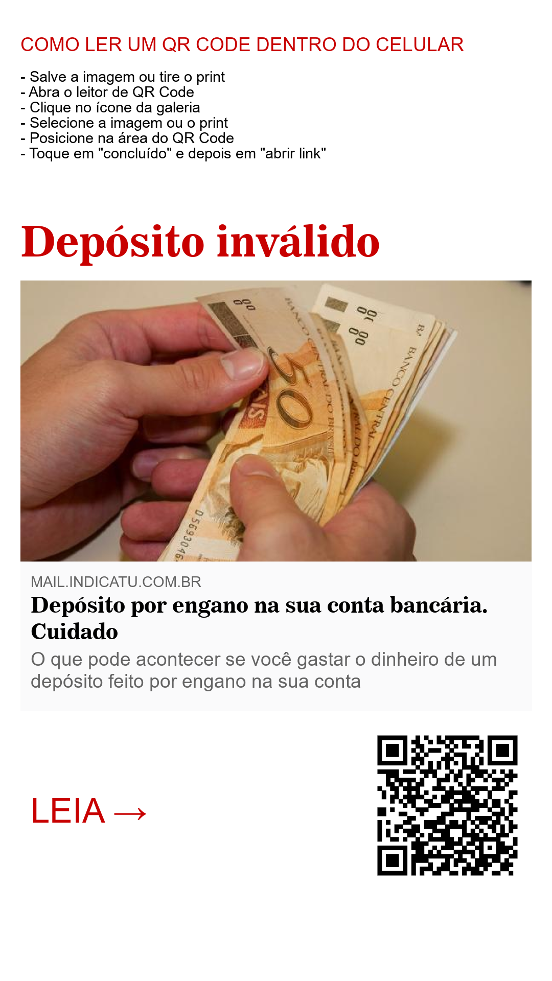 Depósito por engano na sua conta bancária. Cuidado