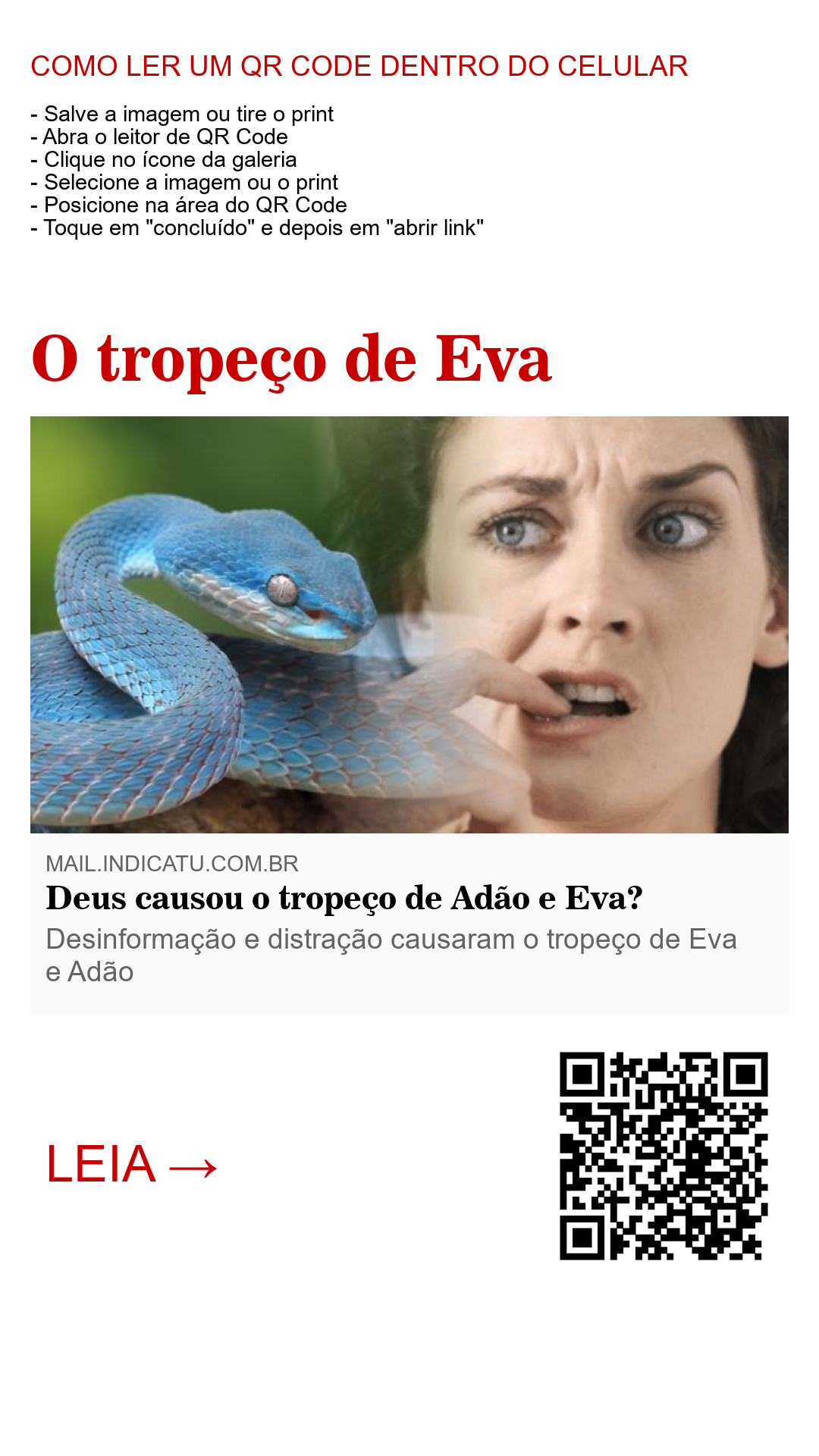 Contrário de Jeová, que provou ser um verdadeiro amigo do casal Adão e Eva, o Diabo usou dos dois artifícios para causar o tropeço de Eva. Ele usou da distração e da desinformação para dar o tombo nela. O relato diz: