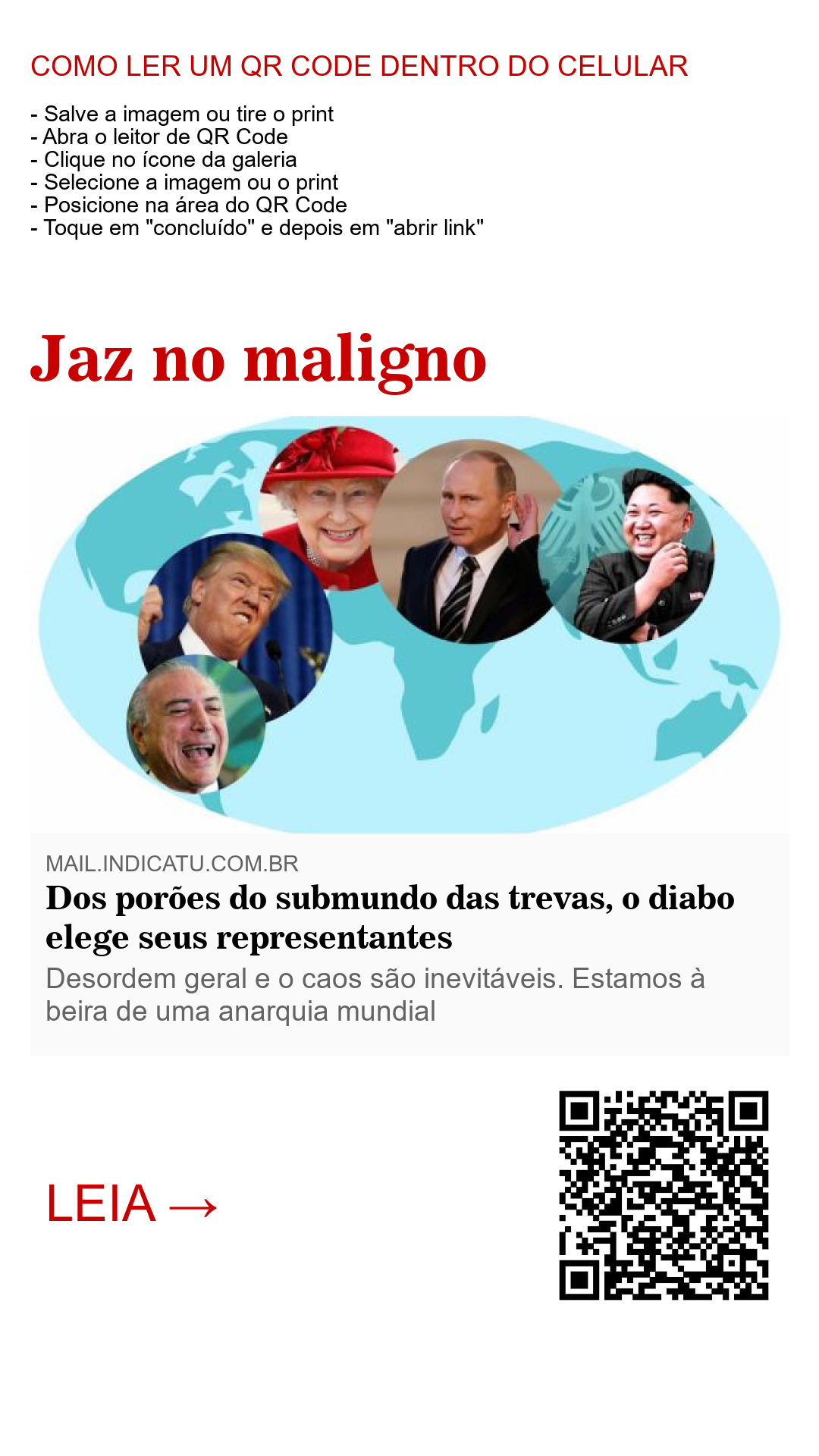 Mas, para não haver dúvida, ou melhor, para que não haja a desculpa de que você não sabia no que estava se envolvendo, o diabo disse de forma bem clara como é que as coisas funcionam por aqui. É para que depois você não diga: “ah!! Eu não sabia”! Por isso, ao oferecer a Jesus todos os governos do mundo, o ímpio disse de forma categórica as palavras do evangelho de Lucas 4: 6: “Então o Diabo lhe disse: “Eu lhe darei toda esta autoridade, bem como a glória destes reinos, porque ela me foi entregue e a dou a quem eu quiser”.