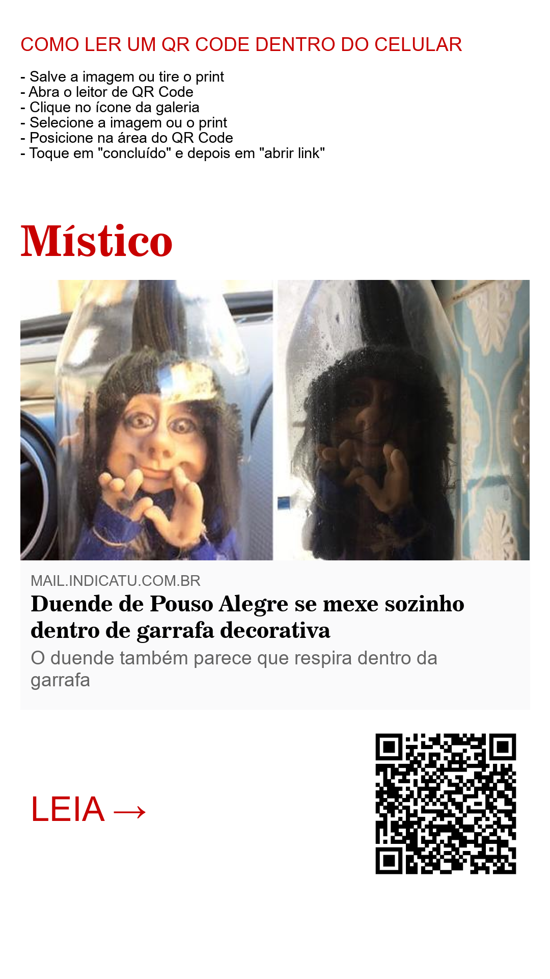 Ainda de acordo com a jovem, cujo nome foi preservado, o fato aconteceu depois que ela seguiu todos os procedimentos recomendados pelo bilhete que vem acompanhado do artefato, a saber: Deu nome ao duende, mostrou-lhe seu novo lar e tudo o mais.
