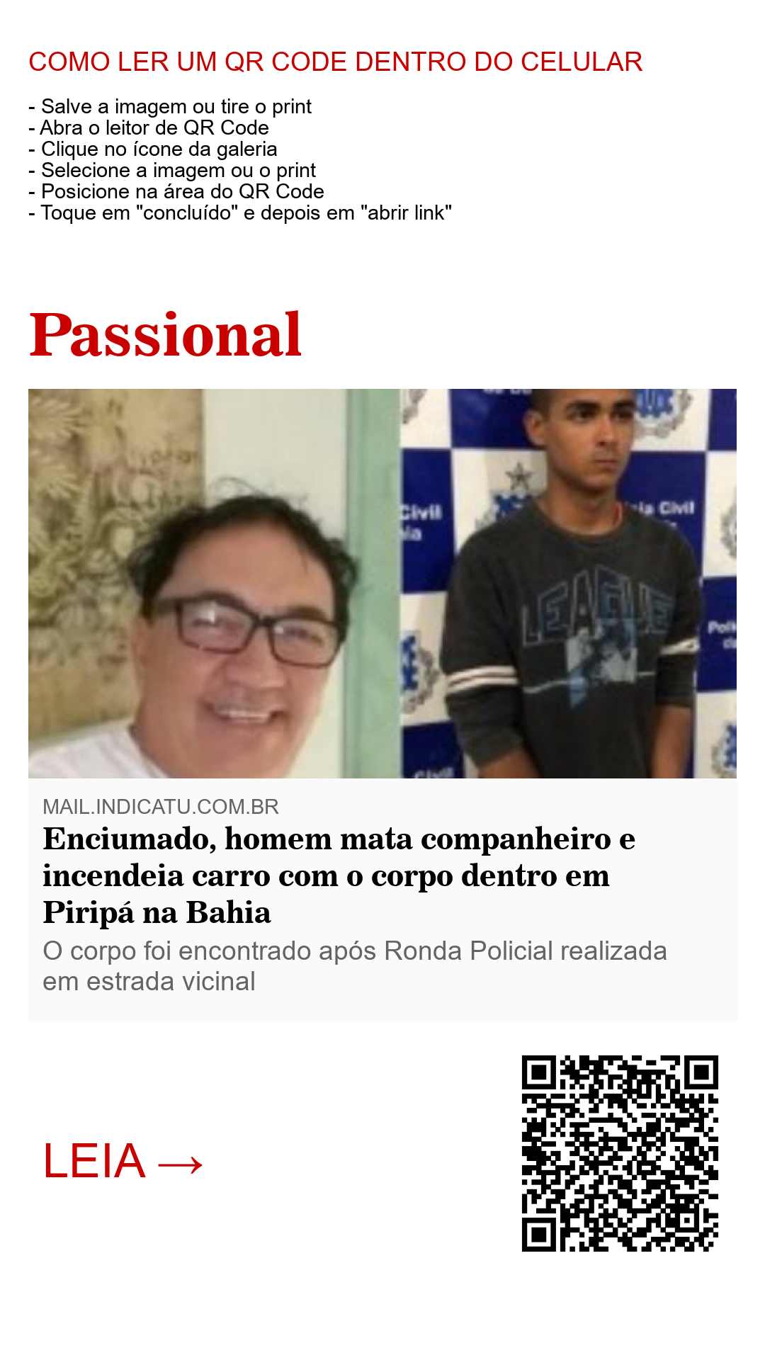 Informações policiais dão conta de que o corpo de Antônio Rocha Pinto, de 55 anos, foi encontrado carbonizado dentro de um carro em uma estrada vicinal na zona rural de Piripá, no sudoeste da Bahia.