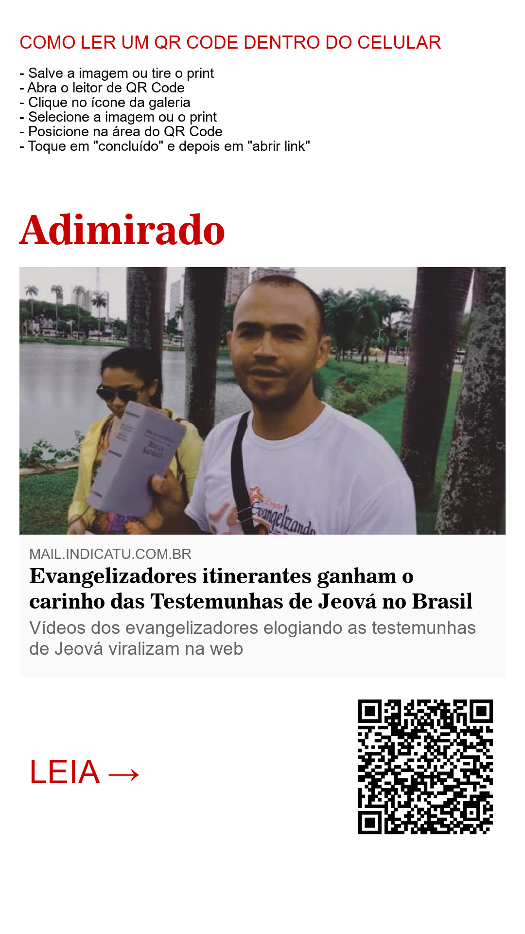 Um casal de evangelizadores itinerantes ganharam a admiração e o respeito das testemunhas de Jeová do Brasil após publicarem nas redes sociais seus vídeos elogiando o trabalho dos religiosos. José Carlos Rodrigues e sua esposa fazem projetos de rua.