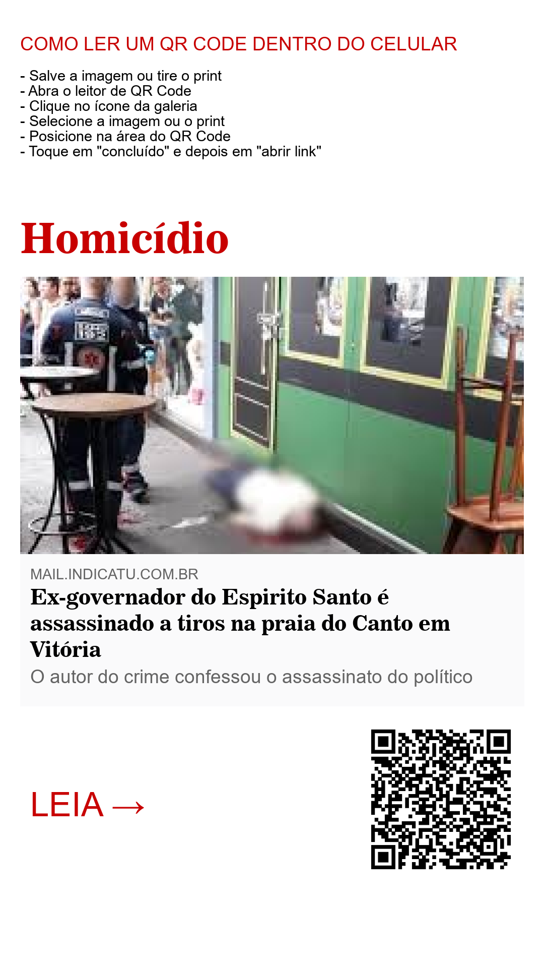 Segundo o Folha Vitória, um elemento chegou em uma motocicleta na rua Chapot Presvot e efetuou os disparos contra o político, que não resistiu aos ferimentos e tombou no local.