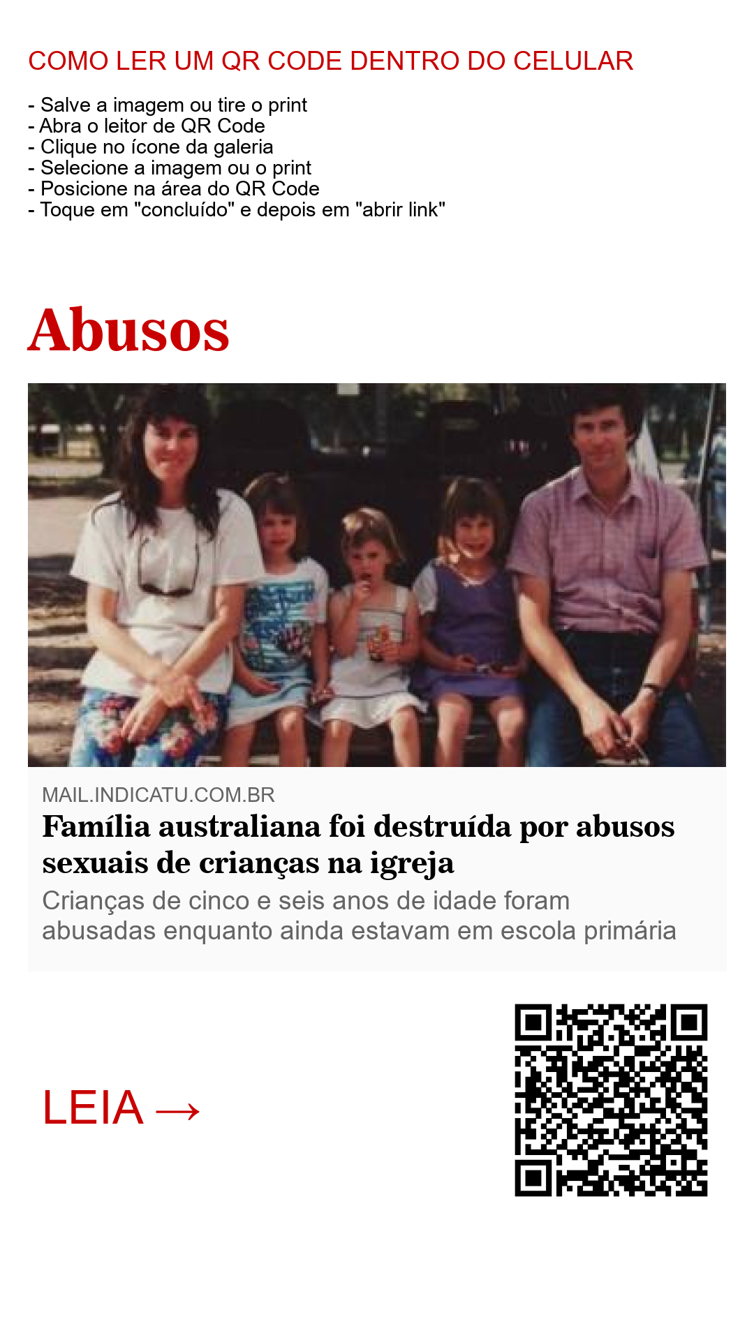 Família australiana foi destruída por abusos sexuais de crianças na igreja