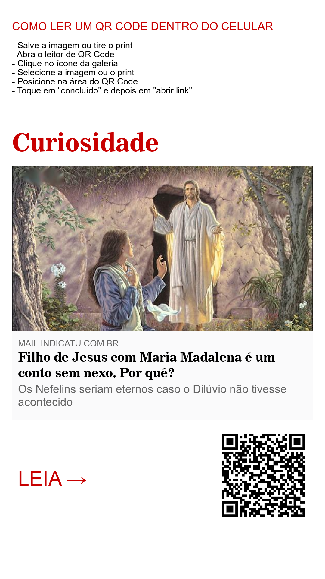 Assim, a história de Jesus e Maria Madalena terem tido um filho é uma invenção apócrifa e sem nenhuma base bíblica. Isso não aconteceu e não estava nos propósitos de Deus. Maria Madalena, seguidora fiel de Jesus da qual ele expulsou sete demônios, também não era uma prostituta como ensina a igreja, mas está agora no céu e é um anjo, um espirito, ao “lado” de Jesus e de seu pai.