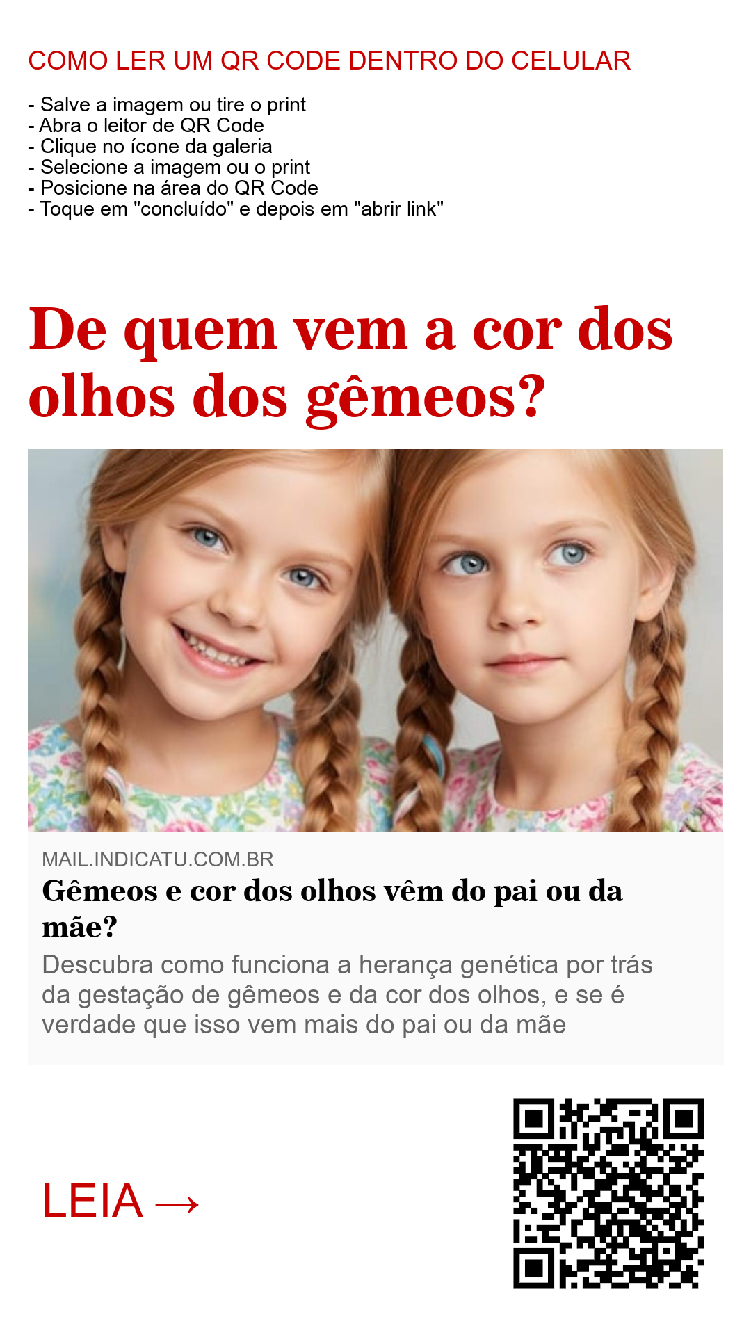 Nem os gêmeos vêm só da mãe, nem os olhos claros vêm só do pai. A genética é um trabalho em dupla — e às vezes até mais complexo do que parece. O que fica claro é que cada herança vem com um pouco de cada lado, e que o DNA carrega surpresas que nem sempre seguem a lógica aparente.