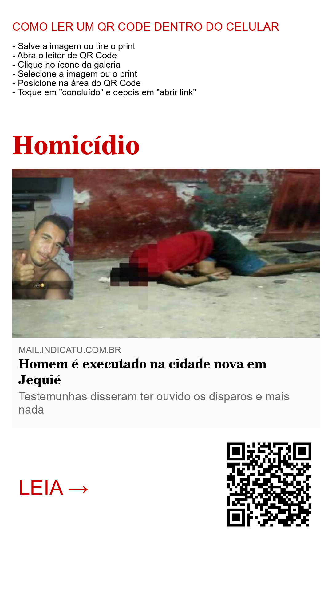 Segunda-Feira, 08 de Janeiro - Segue as informações de que um homem, de prenome Jorge, foi cruelmente executado com vários tiros no rosto por volta das 22:00h desta segunda-feira, na localidade conhecida como cidade nova em Jequié, Sudoeste da Bahia.
