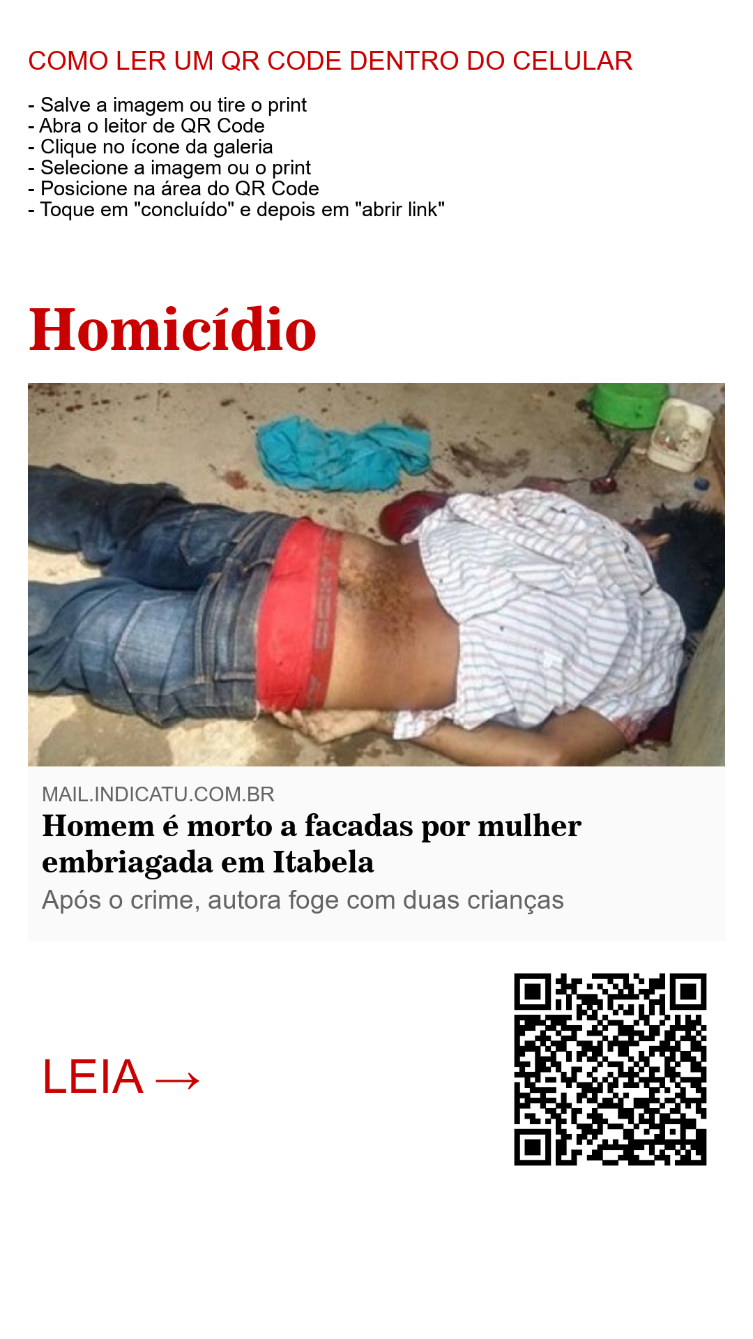 Uma mulher matou a golpes de faca um homem ainda não identificado, na tarde deste sábado (12) no distrito de Montinho, região de Itabela, extremo sul da Bahia.