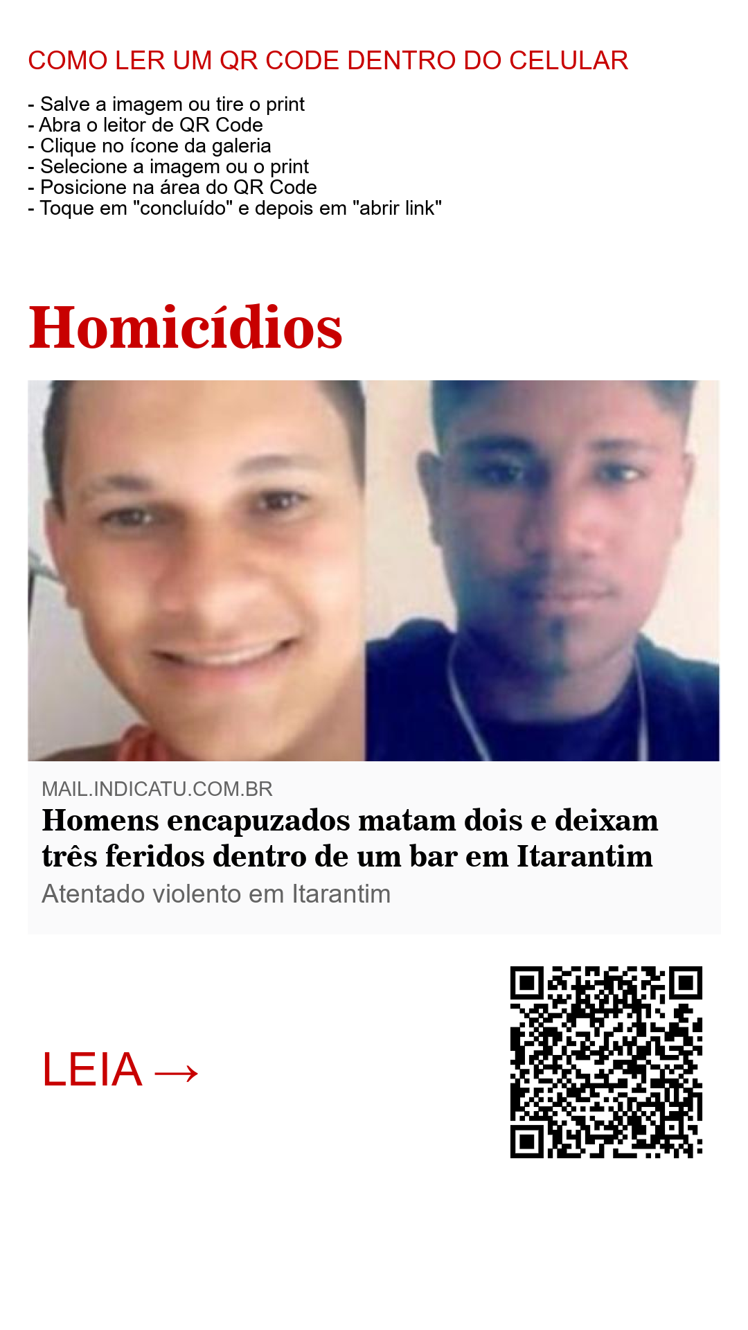 Madrugada violenta em Itarantim na Bahia deixou a comunidade aflita quando dois homens armados e encapuzados invadiram um bar e executaram a tiros dois jovens Ricardo Fernandes Porto e Alessandro Ferreira Santos de 25 e 26 anos de idade.