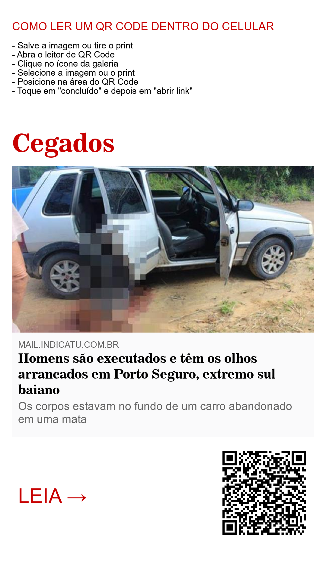 Segundo informações policiais, os corpos de dois homens foram encontrados agora pela manhã desta Segunda-Feira (31), em uma mata no bairro Mira Porto, na cidade de Porto Seguro, no extremo sul da Bahia.