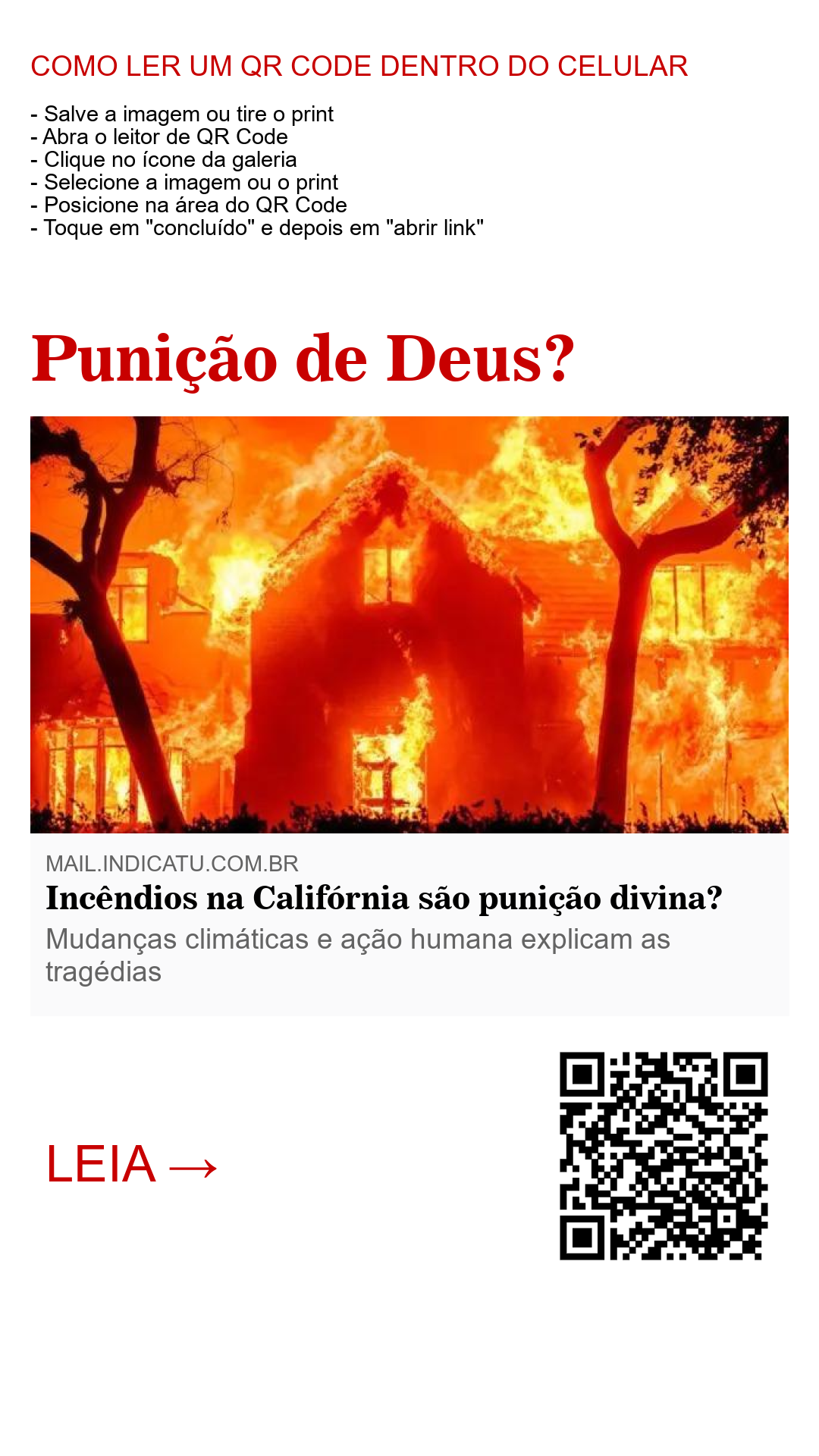 Os incêndios na Califórnia são uma tragédia que resulta de uma combinação de fatores naturais e ações humanas. Atribuir esses eventos a uma punição divina simplifica uma questão complexa e desvia a responsabilidade que temos de cuidar do meio ambiente e tomar medidas preventivas contra desastres. Como destaca Provérbios 19:3: