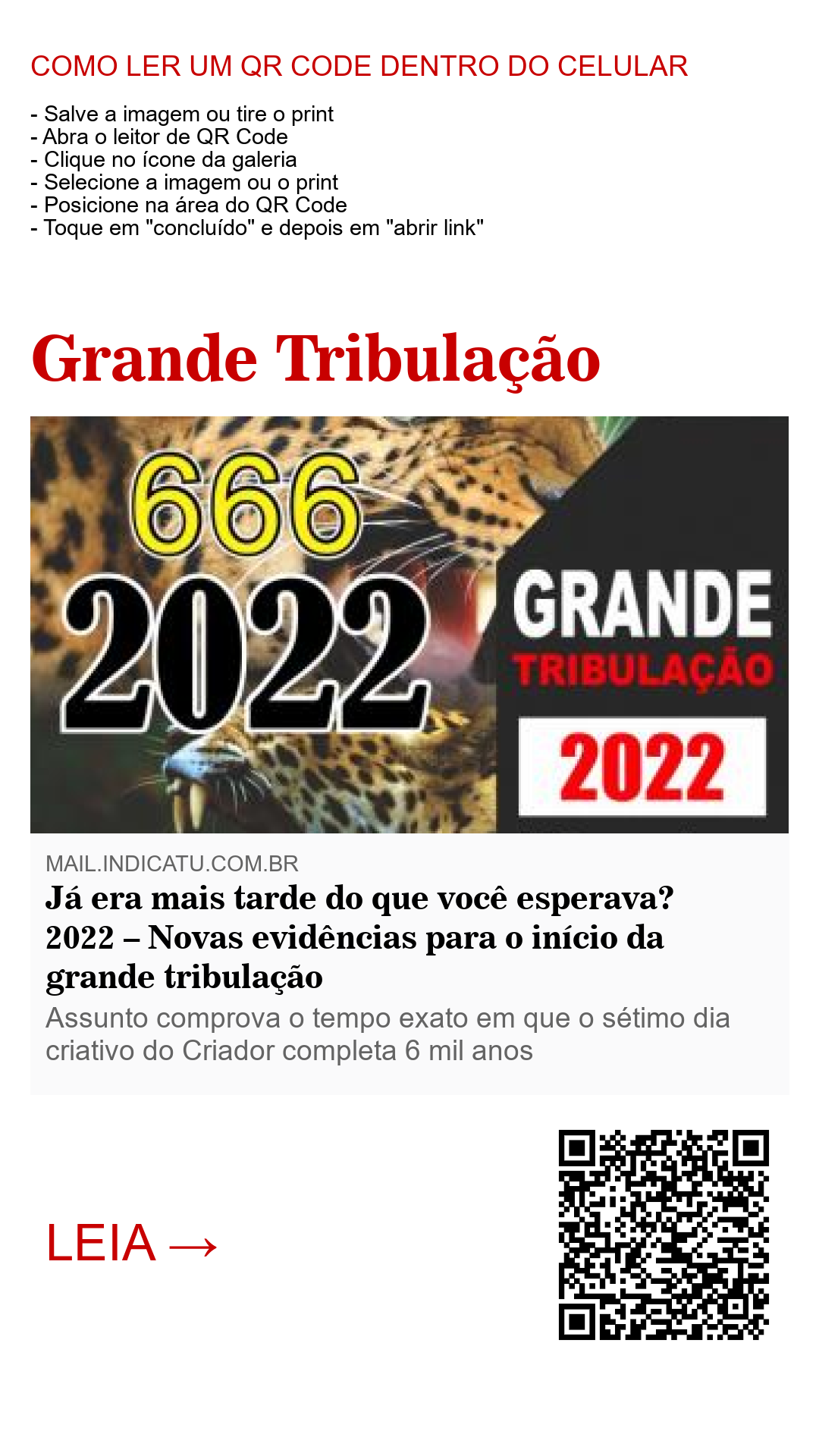 Como as idades de Adão e Eva estão diretamente ligadas aos anos do cumprimento profético condenatório que envolvem as religiões e os governos do mundo? Qual a relação do ano 2022 com o número 666 profetizado pelo apóstolo João em Apocalipse 13:18? Isso e muito mais na nova edição da revista ‘Grande tribulação – 2022 não será mais tarde do que você esperava’. Ao ler a revista você sentirá o verdadeiro sentido da frase ‘Matemática é vida’. Sim, as mais básicas operações numéricas fazem parte do conjunto de provas para se discernir o tempo estabelecido pelo Criador para o acerto de contas com este velho mundo.