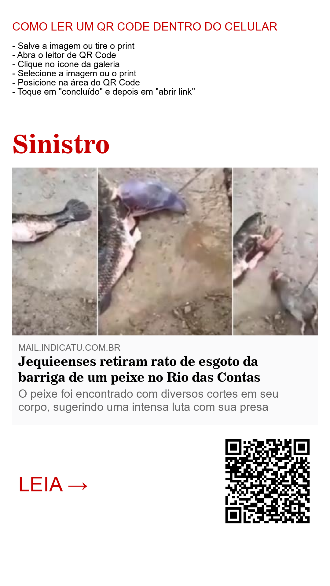 Um enorme rato de esgoto foi retirado da barriga de um peixe por moradores das imediações do Rio das Contas em Jequié nesse início de semana. O vídeo gravado por populares impressionou milhares de internautas pelo seu conteúdo exótico e ‘nojento’, um fato bastante incomum e difícil de se ver.