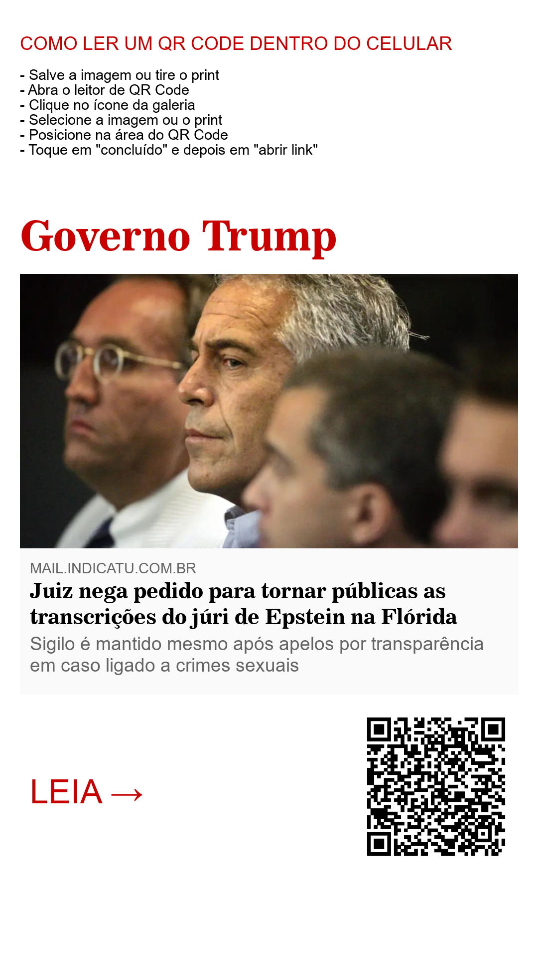 Um juiz federal na Flórida negou na quarta-feira um pedido do governo Trump para divulgar as transcrições do grande júri de uma investigação sobre o financista desgraçado Jeffrey Epstein, frustrando os esforços do presidente Trump para dissipar uma tempestade de críticas de muitos de seus apoiadores.