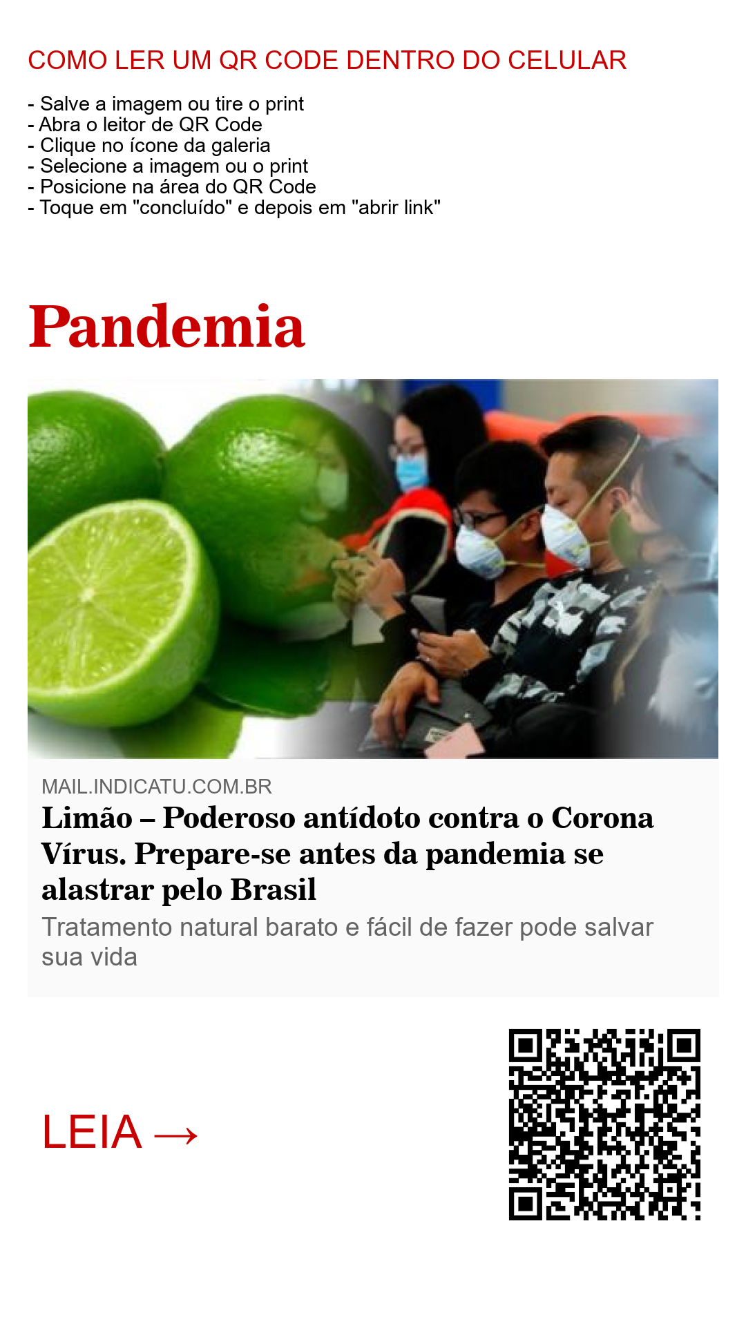 Para mais informações sobre a “cura do limão” você encontra diversos vídeos e testemunhos de pessoas que utilizam desse tratamento para se proteger e ficar livre dessas ameaças astutas que até o momento já ceifou centenas de vidas e já infectou milhares.