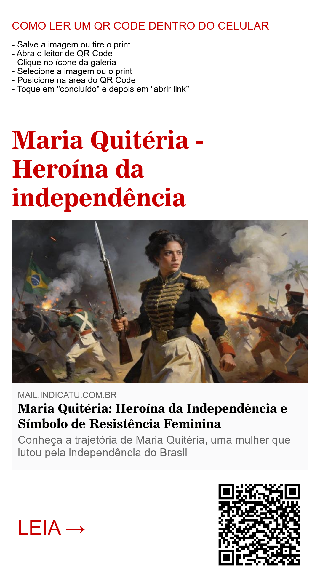 Maria Quitéria de Jesus é uma figura que merece ser lembrada e celebrada na história do Brasil. Sua coragem em lutar pela independência e sua determinação em desafiar as normas de gênero de sua época a tornam um ícone não apenas da história militar, mas também da luta pelos direitos das mulheres. Ao revisitar sua trajetória, é possível refletir sobre a importância da inclusão e do reconhecimento das contribuições femininas na construção da sociedade brasileira.