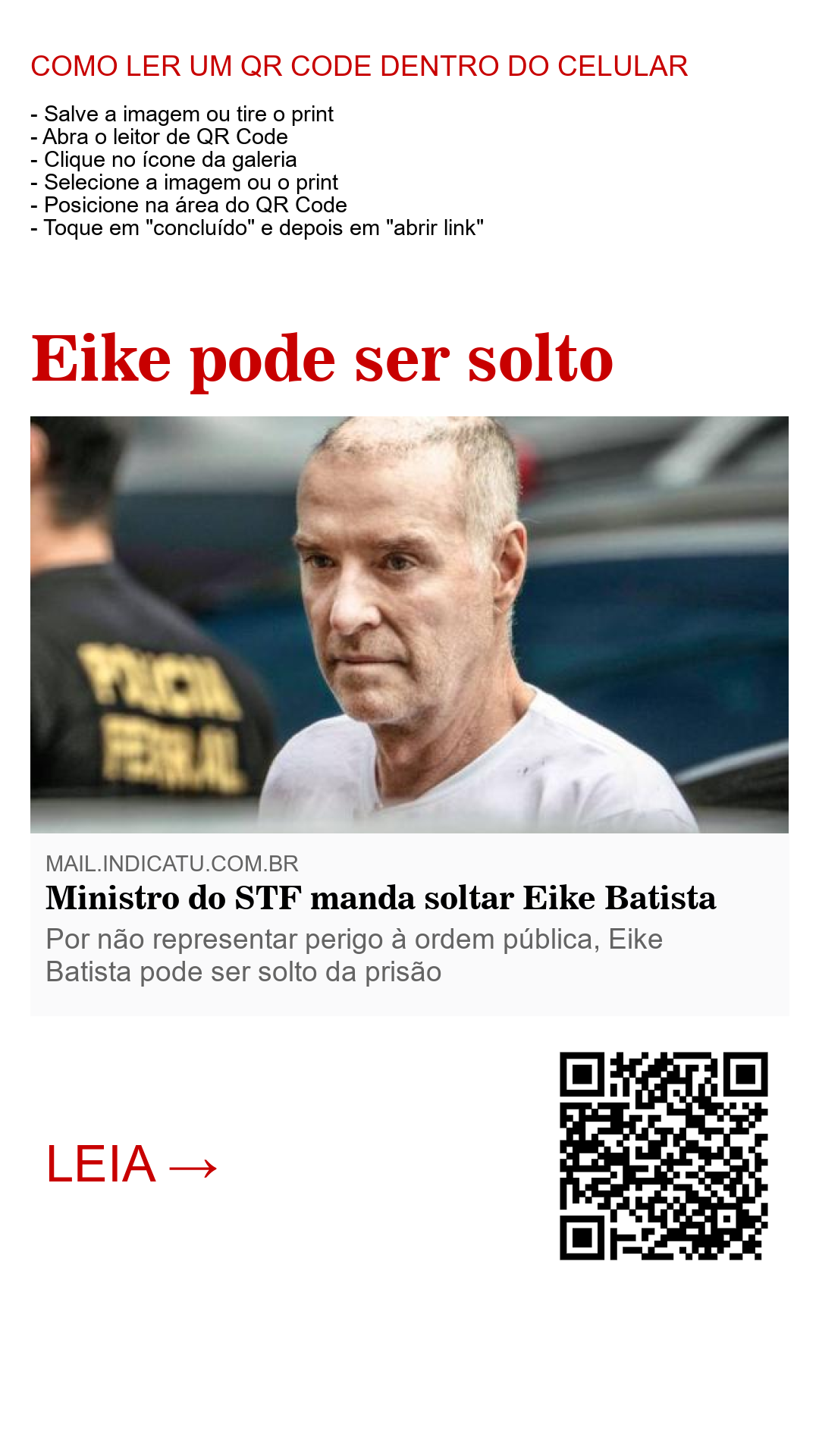 Eike Batista, preso acusado de corrupção e lavagem de dinheiro, pode ser solto do cárcere após ministro do Supremo Tribunal Federal, Gilmar Mendes, conceder habeas-Corpus ao acusado.