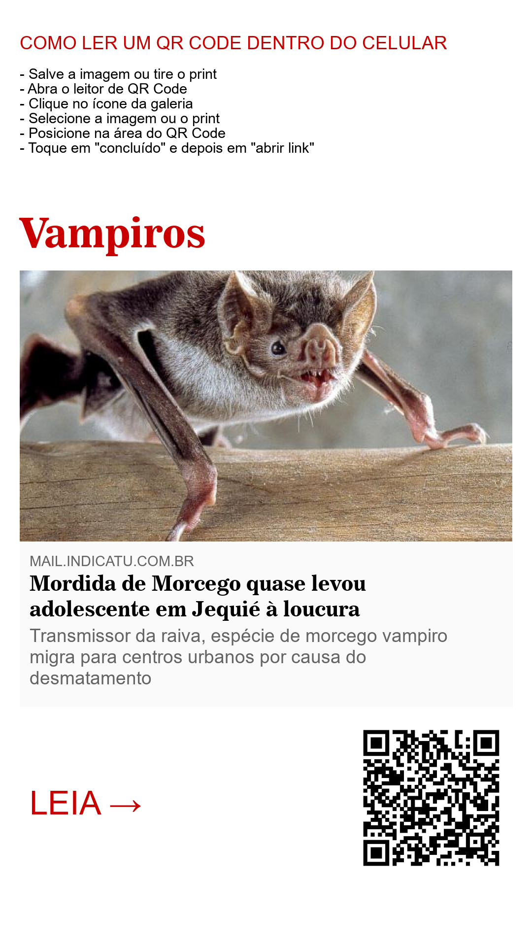 Mordida de Morcego quase levou adolescente em Jequié à loucura