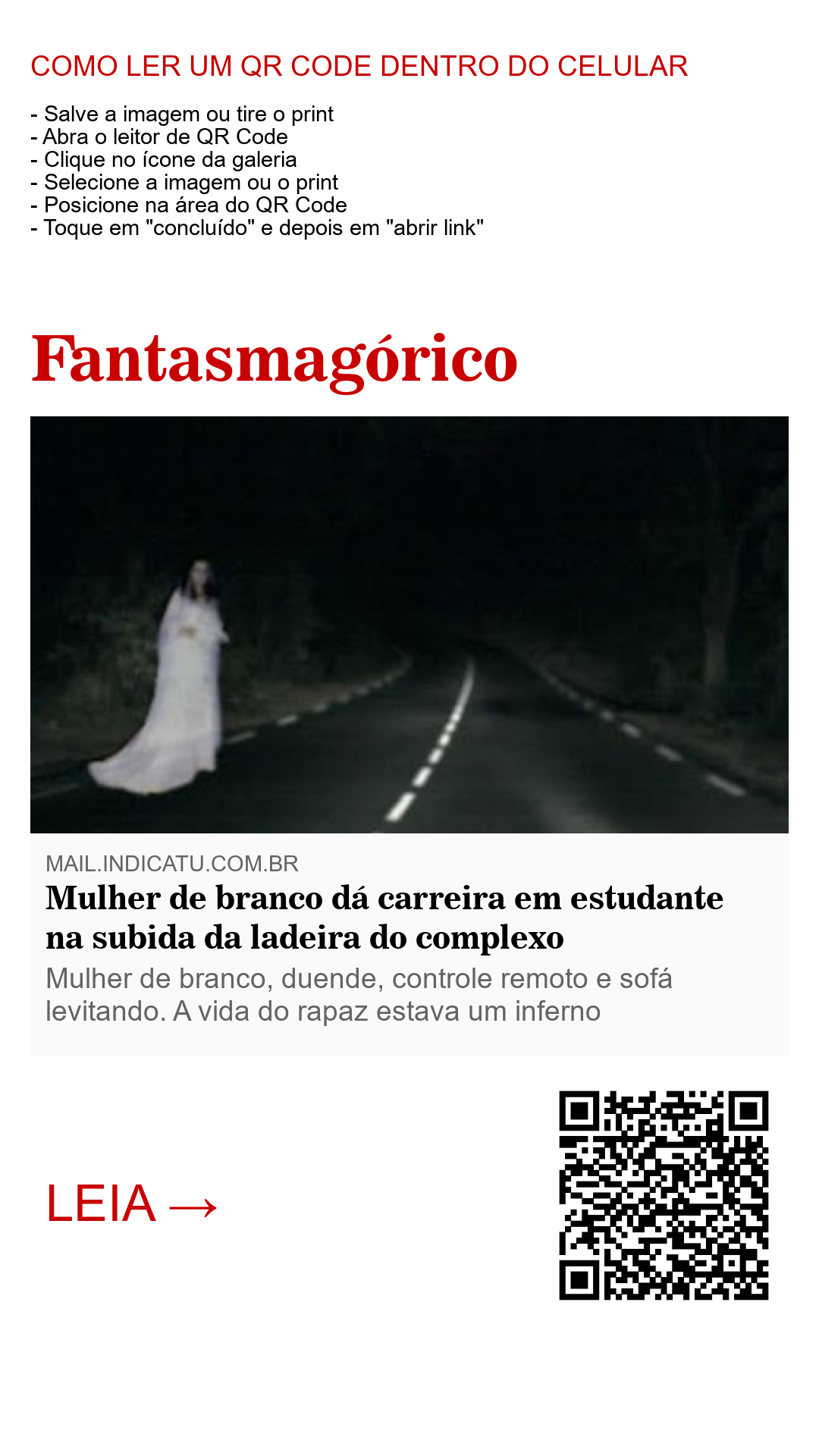 Passamos pela fase da mulher do pé de cabra. Os meninos e as meninas sofreram com o boneco fofão e a boneca que crescia e arranhava o rosto delas com as unhas. Mais rescentemente surgiu também o cadeirudo tocando o terror em um residencial recém inaugurado na cidade, e desta vez, eis o relato da mulher de branco.